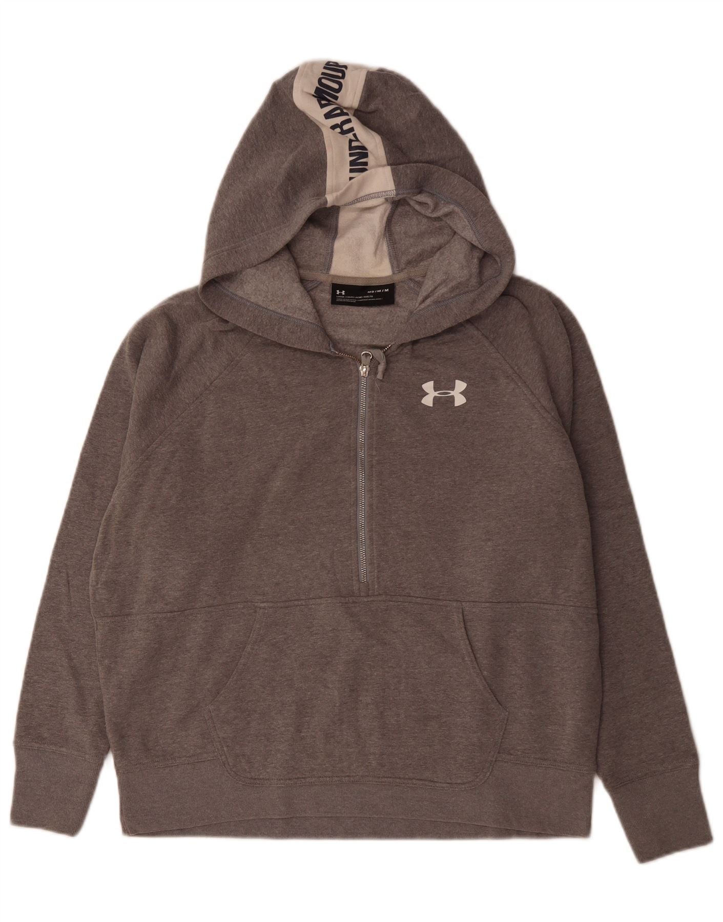 UNDER ARMOUR Mens Graphic Zip Neck Hoodie Jumper Medium Grey Colourblock