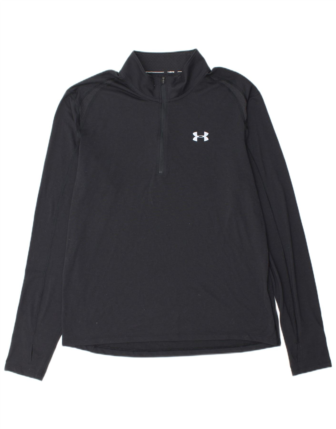 UNDER ARMOUR Mens Heat Gear Zip Neck Pullover Tracksuit Top XL Black