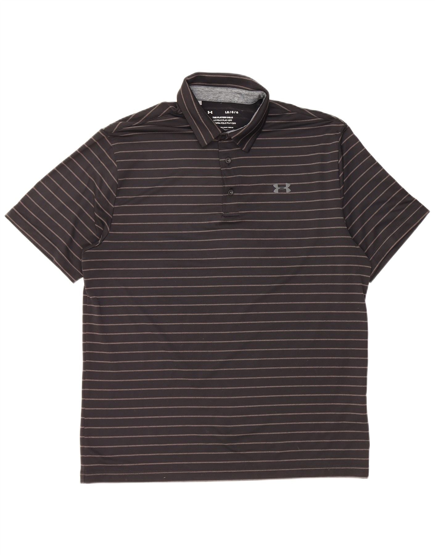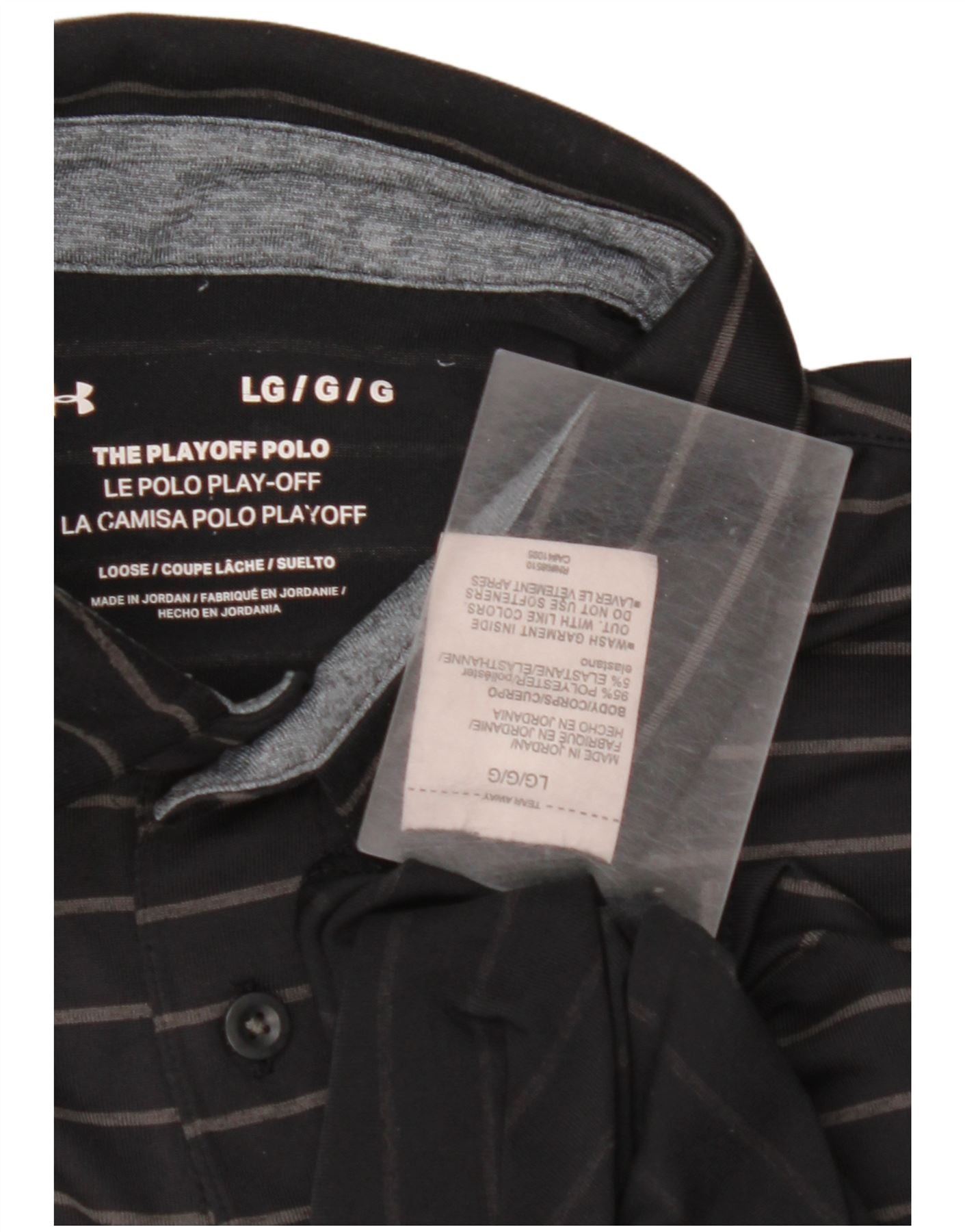 UNDER ARMOUR Mens Polo Shirt Large Black Striped Polyester