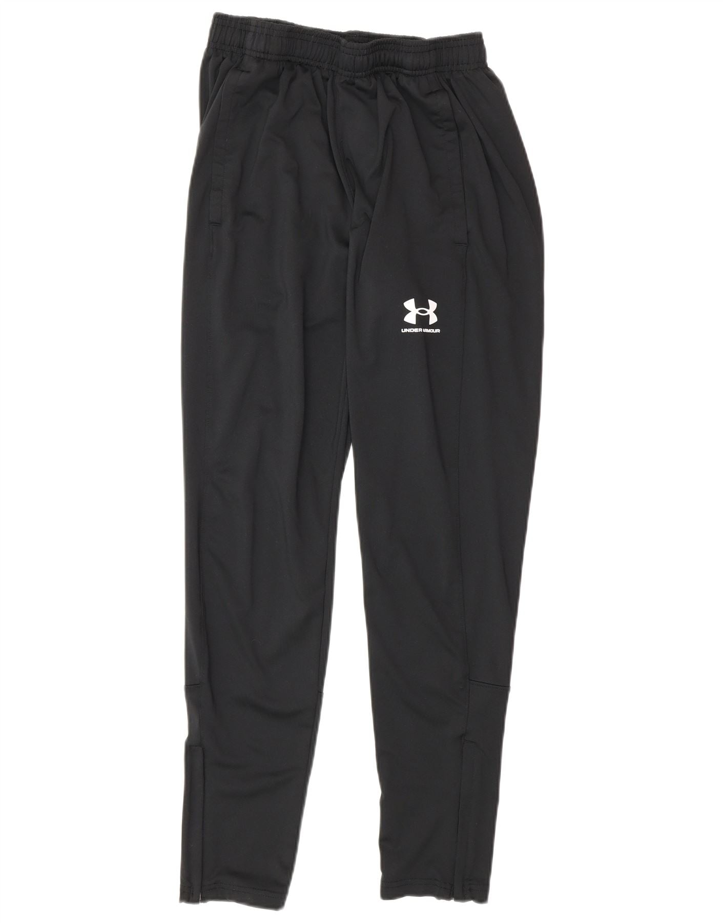 - AI Description: These Under Armour mens tracksuit trousers joggers are crafted from a smooth, blended polyester fabric, offering comfort and flexibility. They feature a pull-on style with an adjustable waist for a secure fit. The regular fit and jogger cut provide ease of movement. Practical pockets are included. A distinctive white Under Armour logo is subtly placed, adding a signature touch. Ideal for sports or casual wear, these trousers combine performance with everyday style.