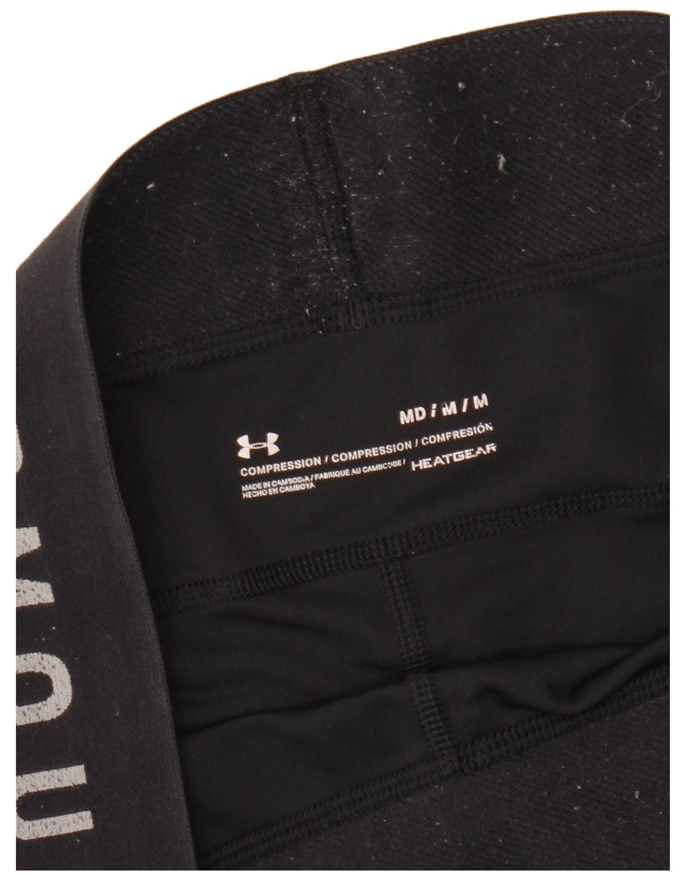 UNDER ARMOUR Womens Heat Gear Graphic Leggings UK 12 Medium Black