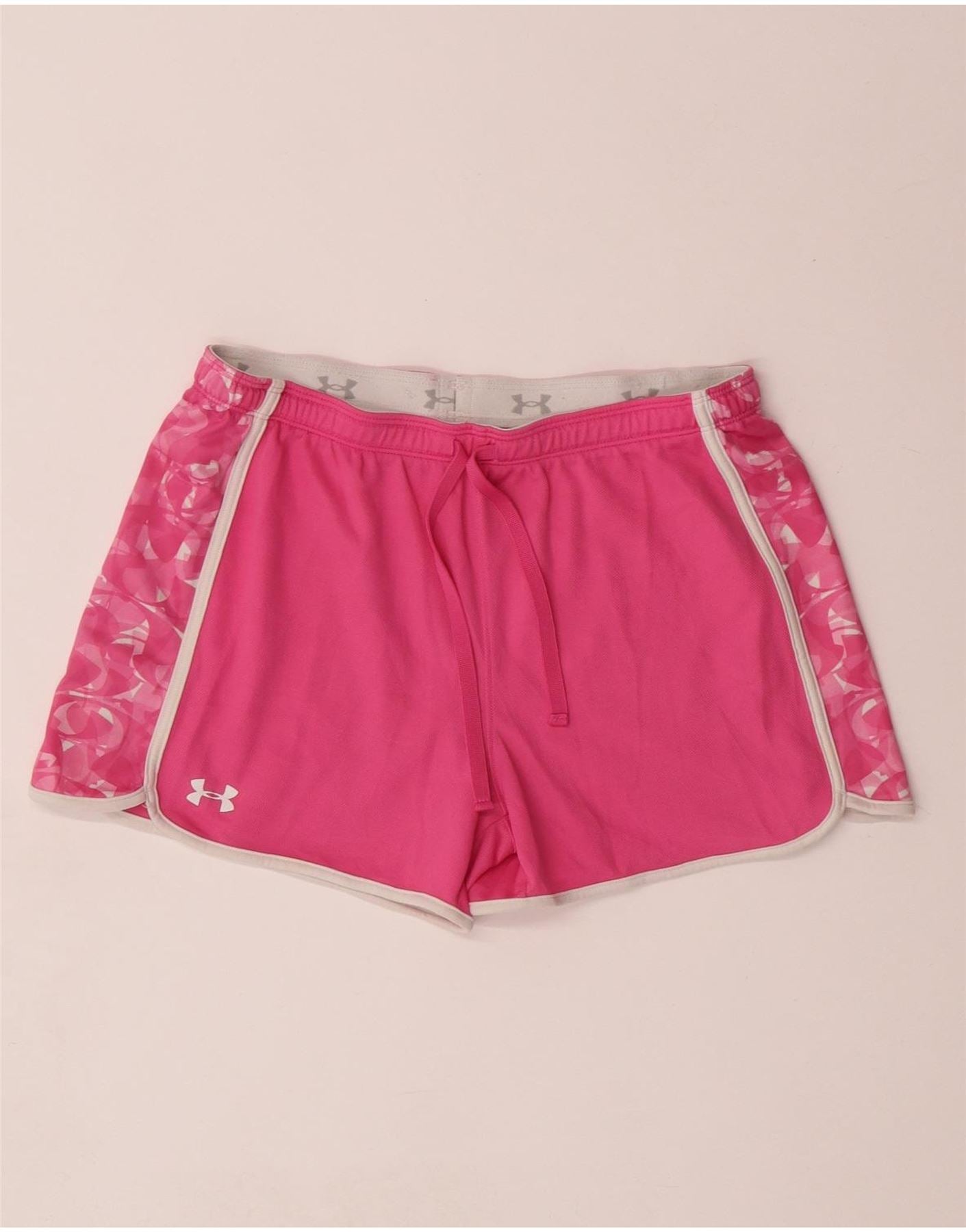 UNDER ARMOUR Womens Heat Gear Sport Shorts UK 14 Medium Pink Geometric
