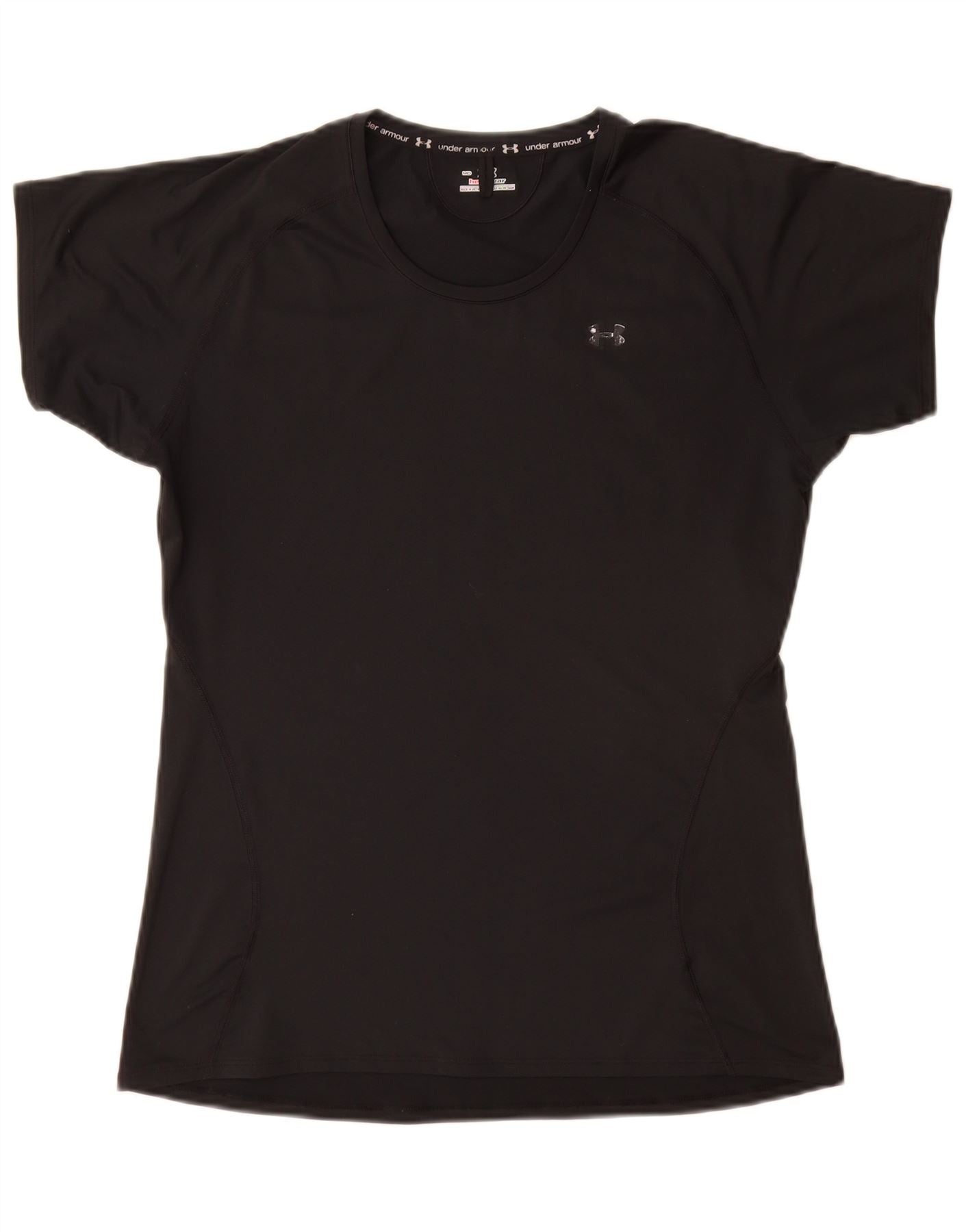 UNDER ARMOUR Womens Heat Gear T-Shirt Top UK 14 Medium Black Polyester