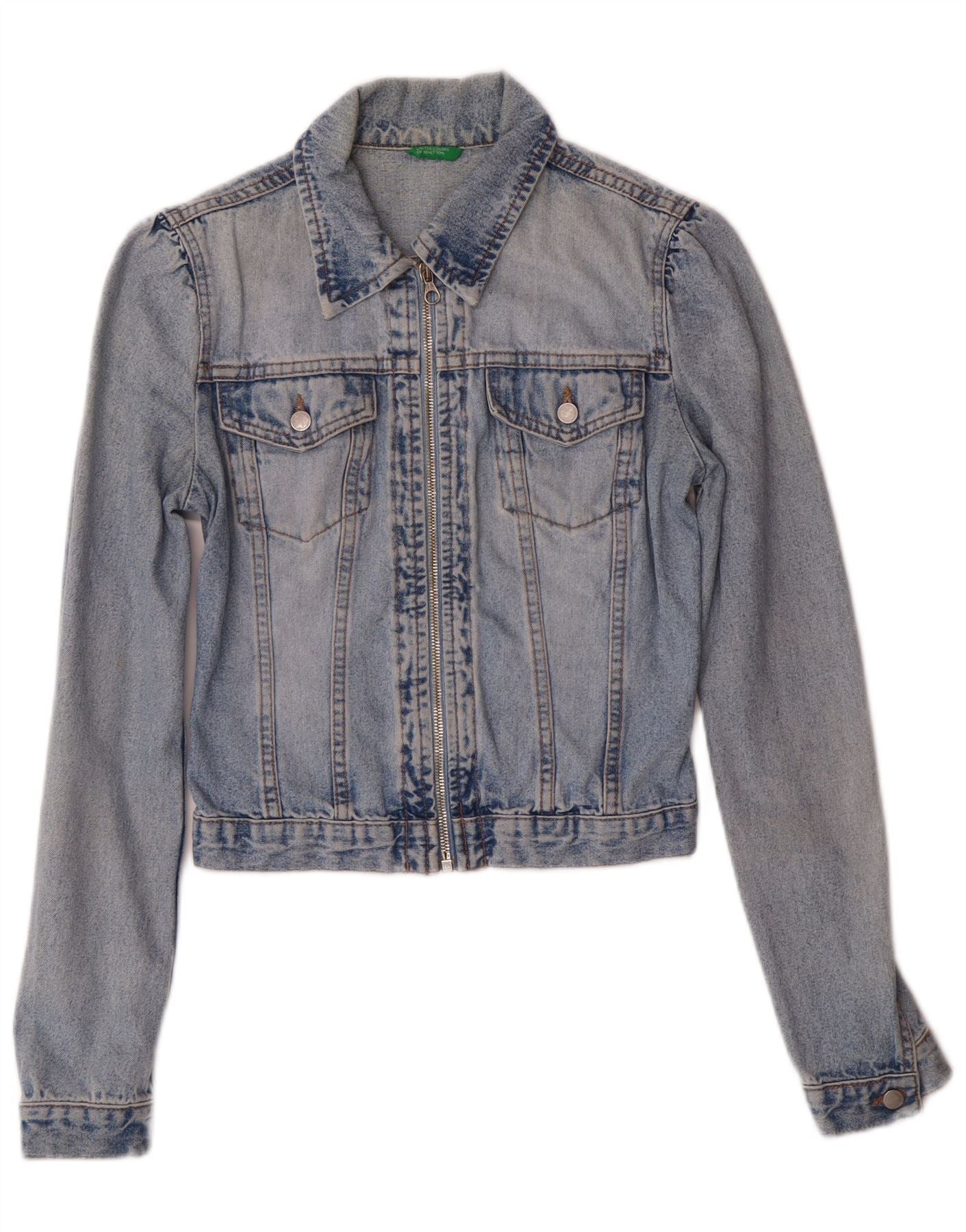 United Colors of Benetton Womens Crop Denim Jacket UK 6 XS Blue Classic