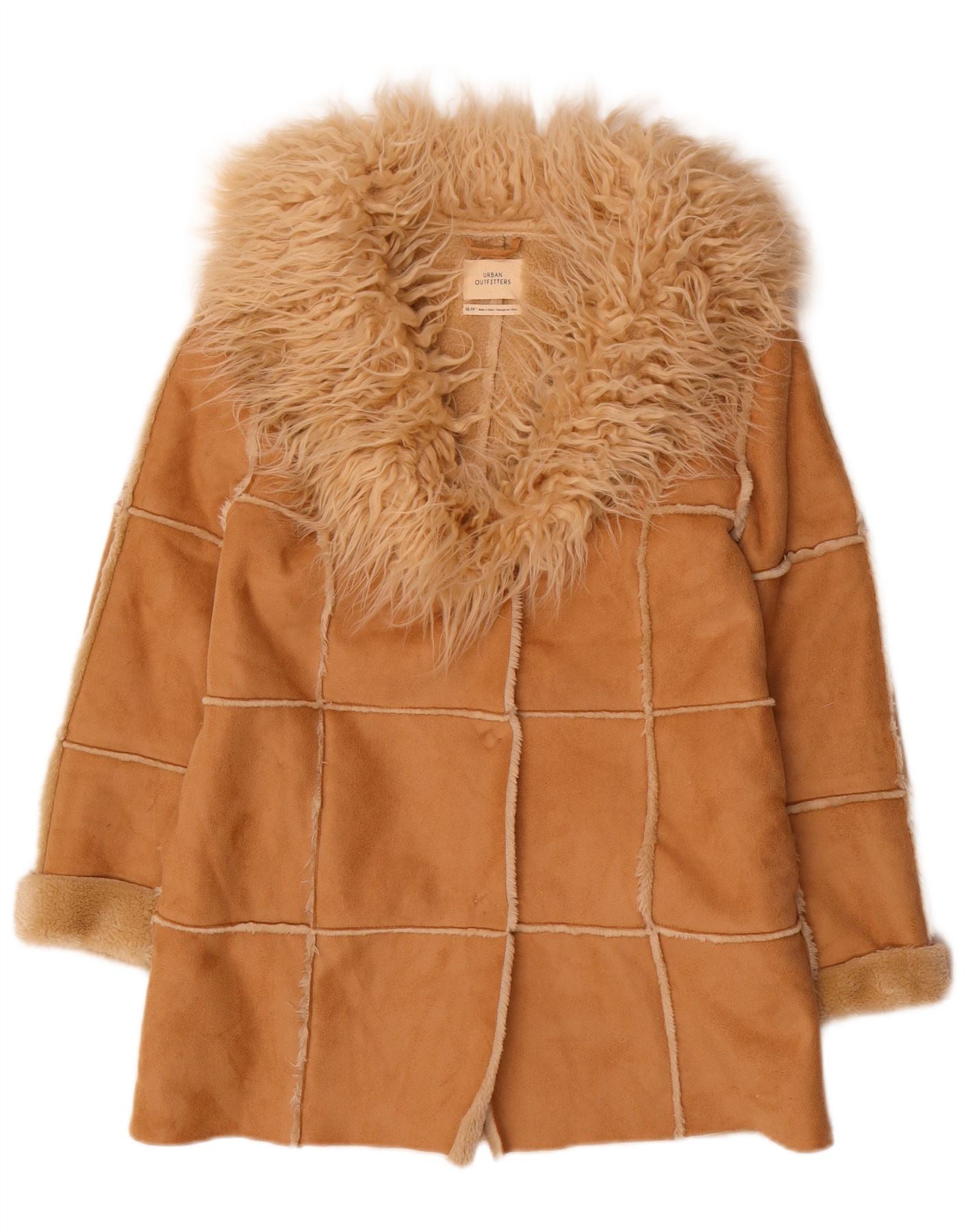 URBAN OUTFITTERS Womens Sherpa Overcoat UK 6 XS Beige Polyester