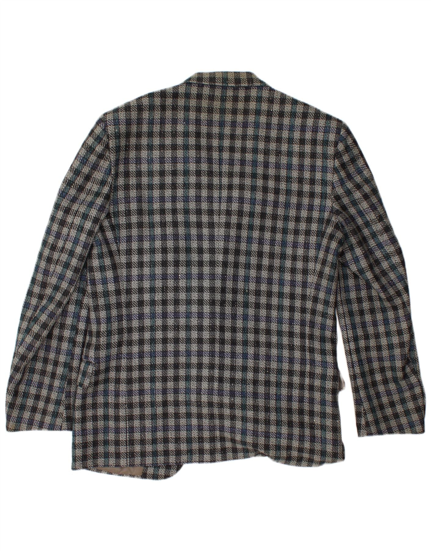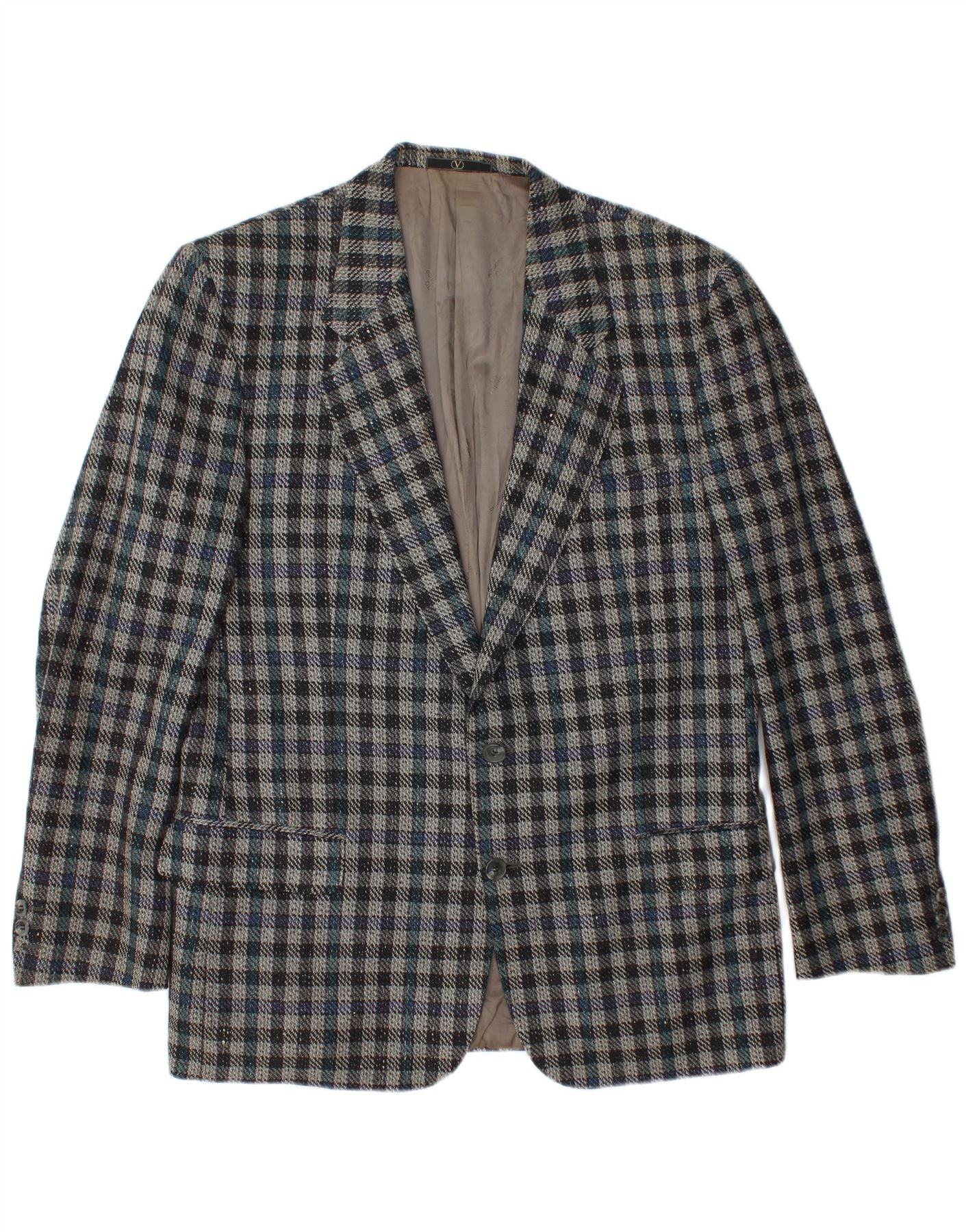 VALENTINO Mens 2 Button Blazer Jacket IT 50 Large Blue Check Virgin Wool