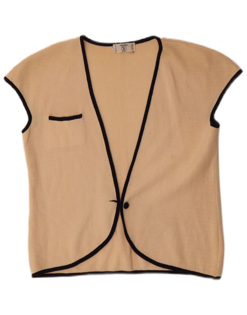 VALENTINO Womens Sleeveless Cardigan Sweater IT 44 Medium Beige Wool