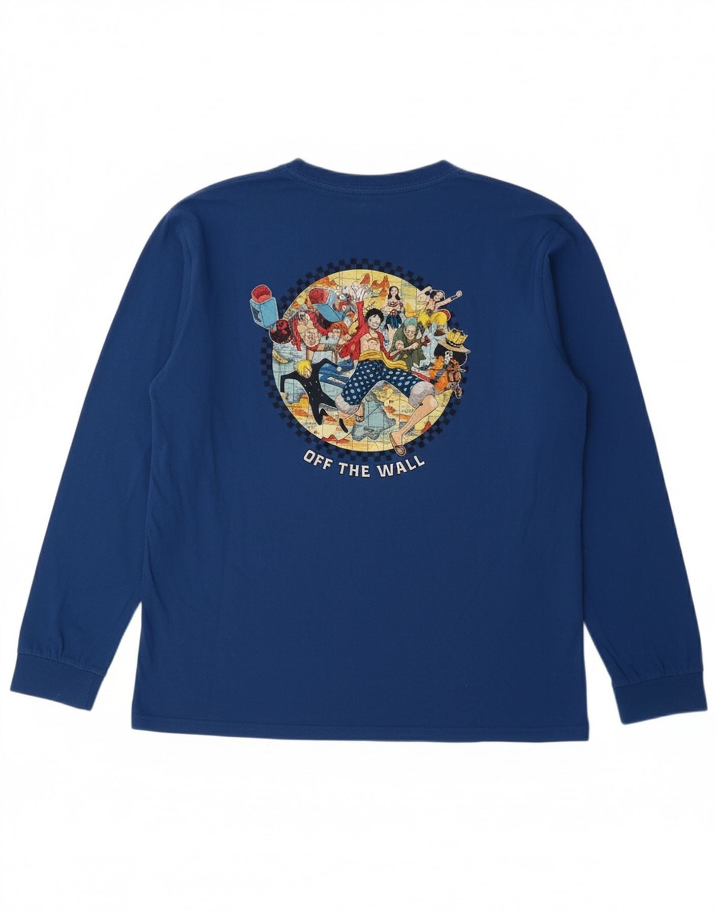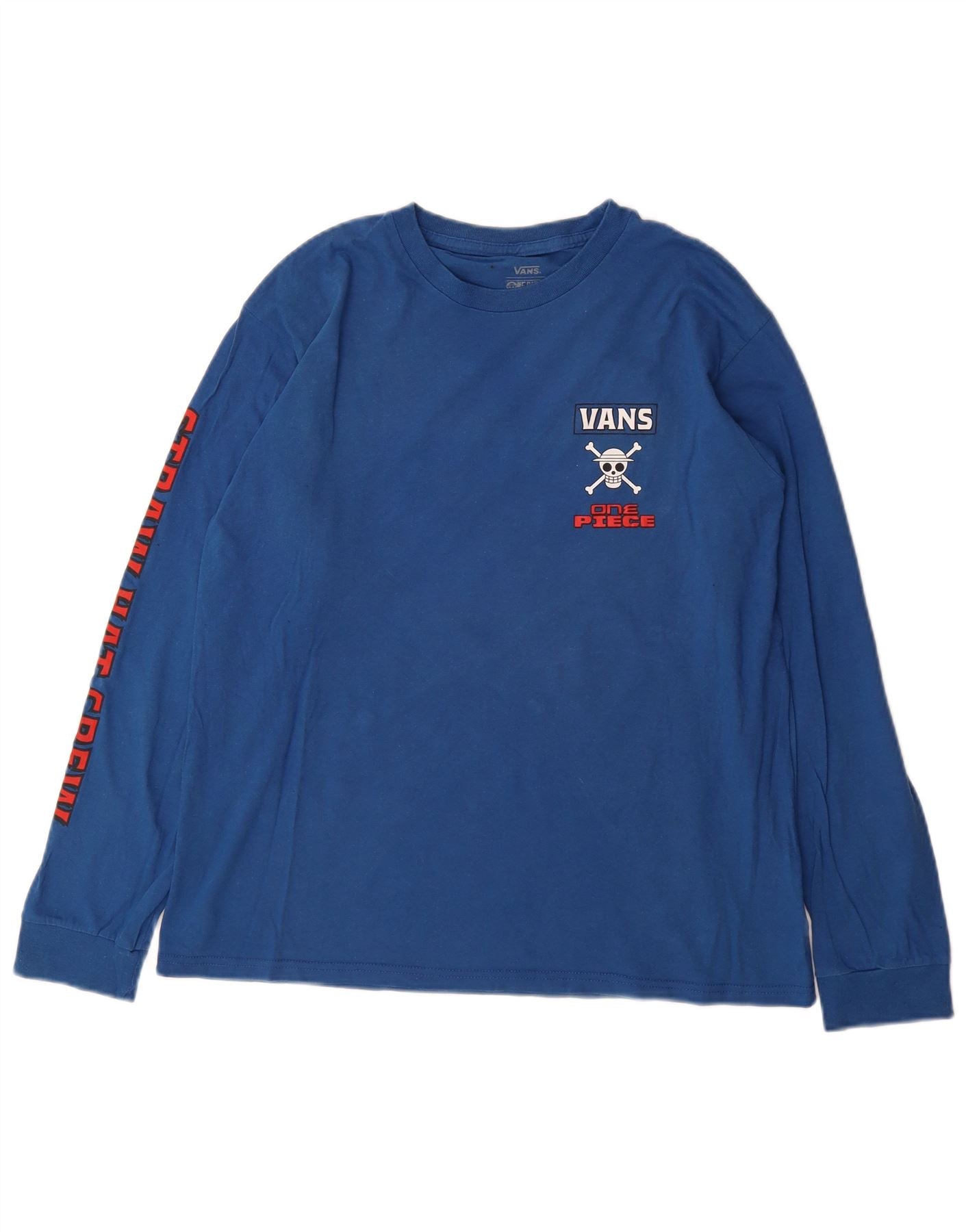 VANS Boys Straw Hat Crew Graphic Top Long Sleeve 14-15 Years XL Blue