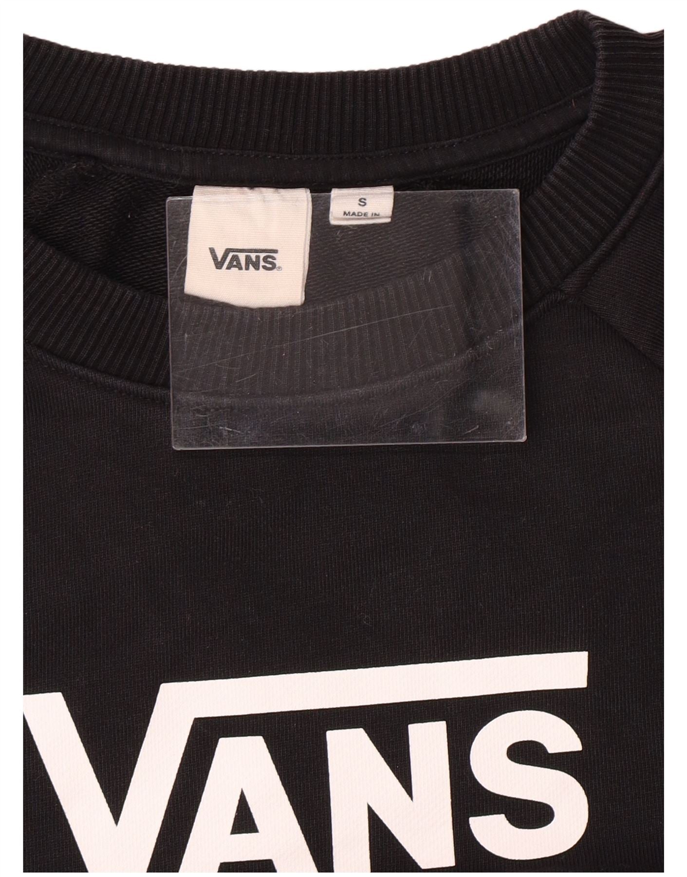 VANS Womens Crop Oversized Graphic Sweatshirt Jumper UK 10 Small Black