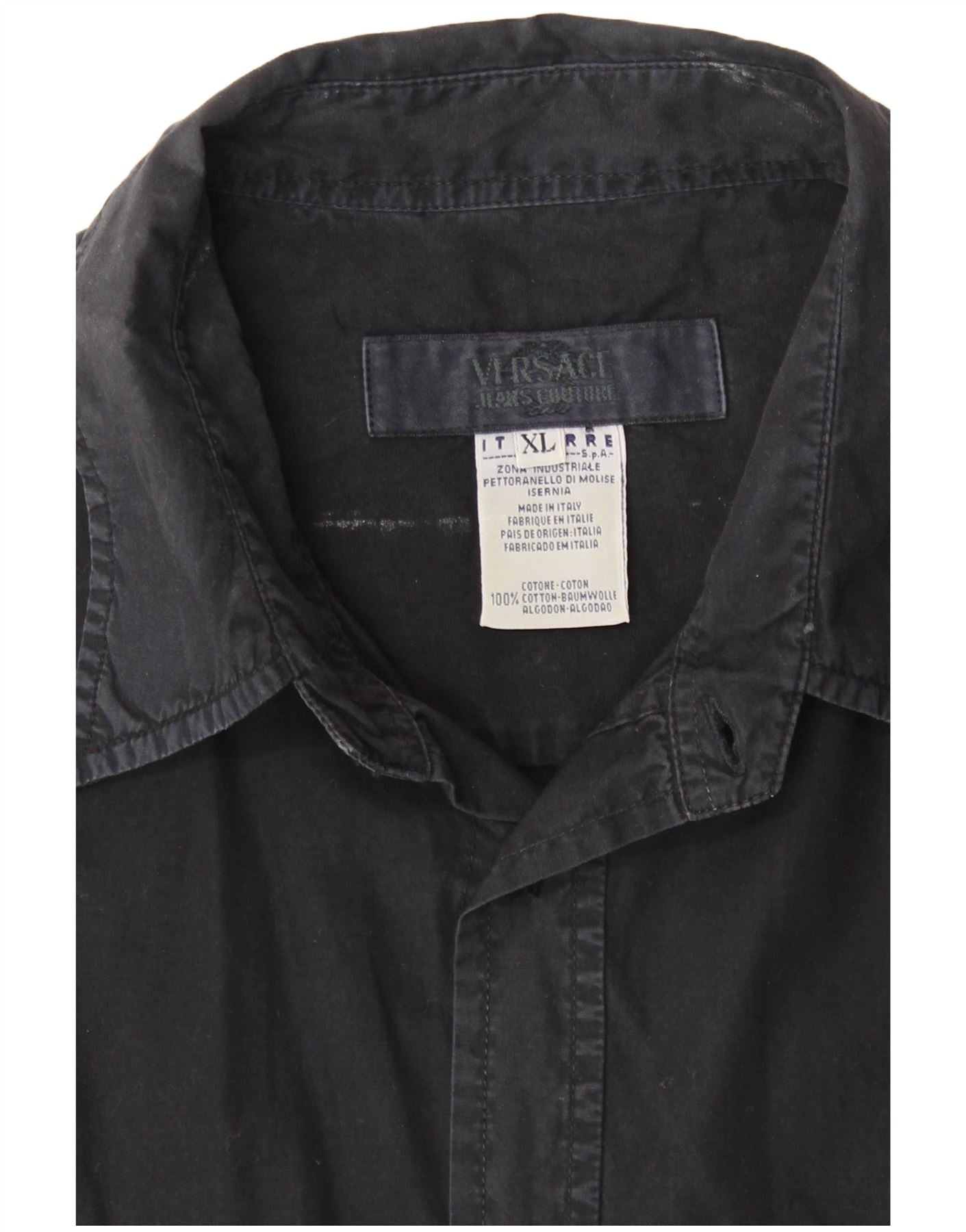 - AI Description: This Versace men's shirt is crafted from woven black cotton. It features a collared neckline and a button closure. The regular fit ensures a comfortable silhouette. Long sleeves and a chest pocket add classic detailing. The shirt's clean design makes it a versatile wardrobe staple.
