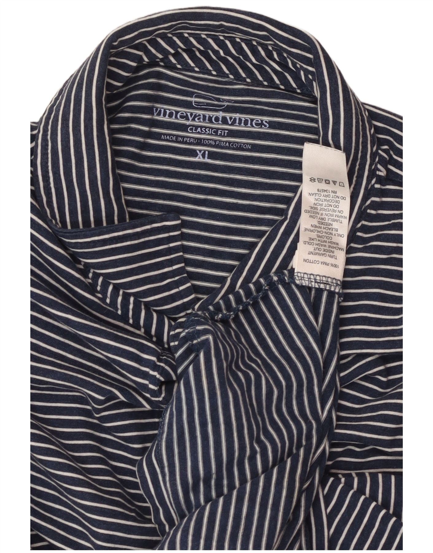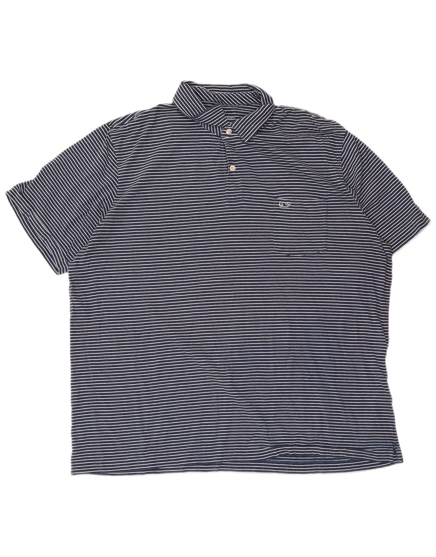 VINEYARD VINES Mens Classic Fit Polo Shirt XL Navy Blue Pinstripe Cotton