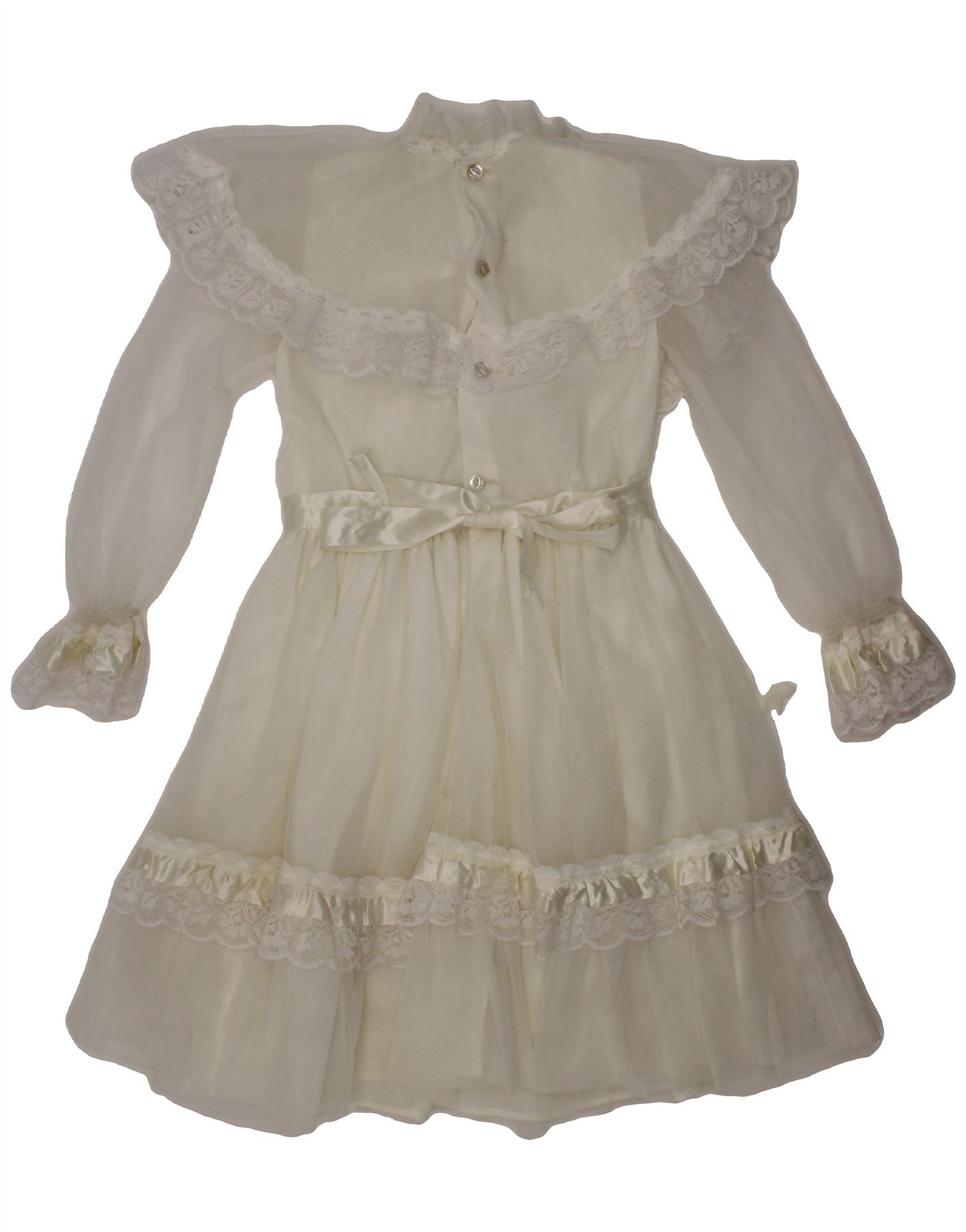 VINTAGE Baby Girls Long Sleeve Maxi Dress 18-24 Months Off White Nylon