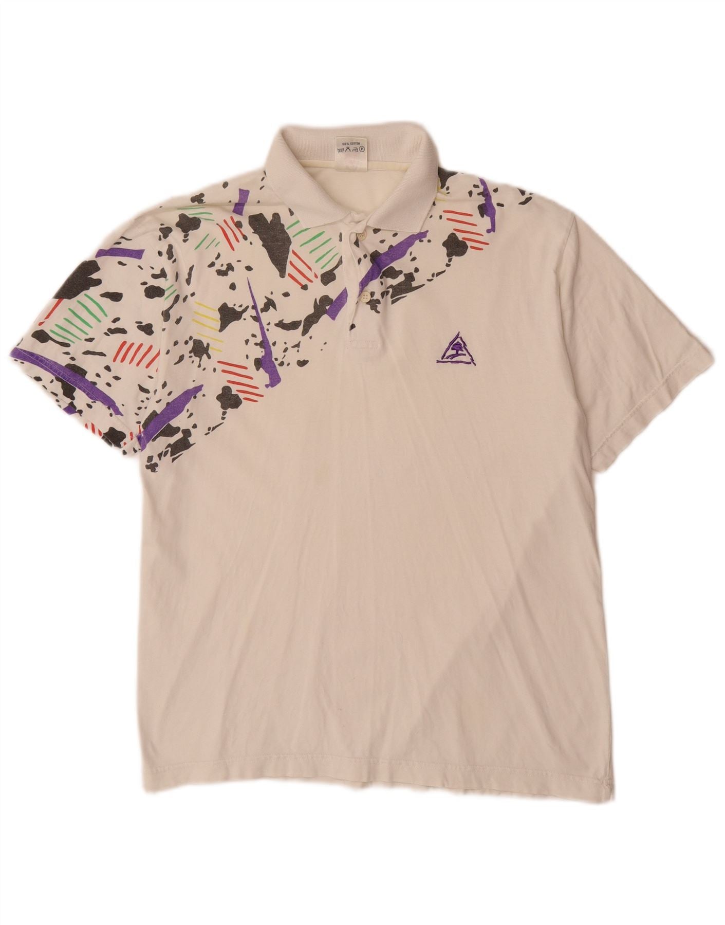 VINTAGE Boys Polo Shirt 15-16 Years Medium White Camouflage Cotton
