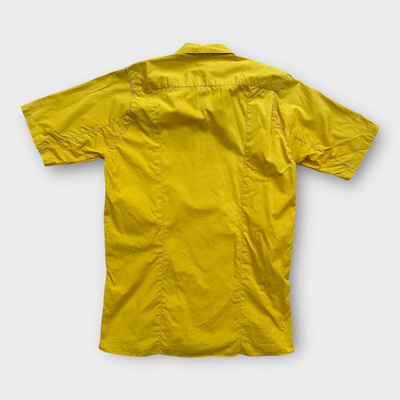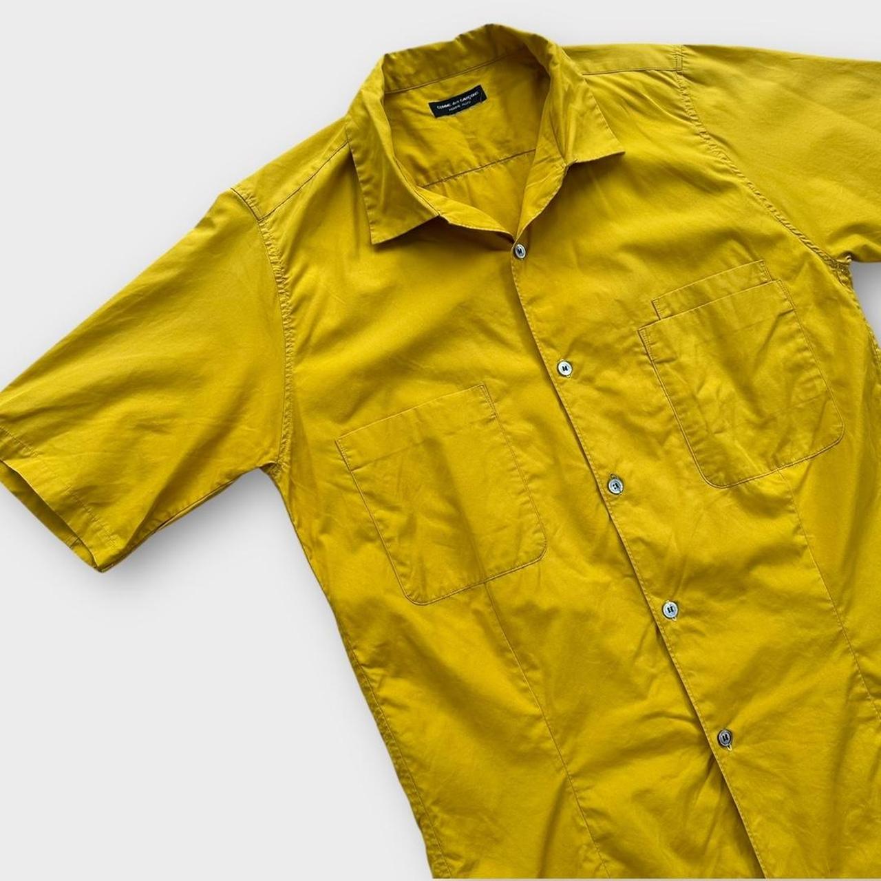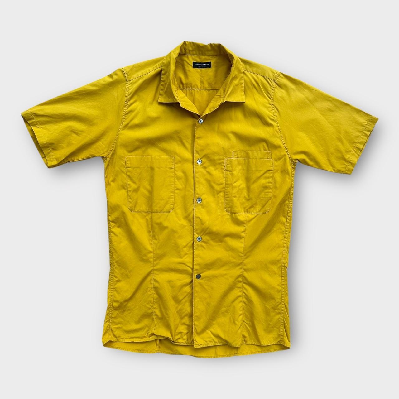 Vintage button up short sleeve Comme Des Garçons shirt in yellow with pockets on the front