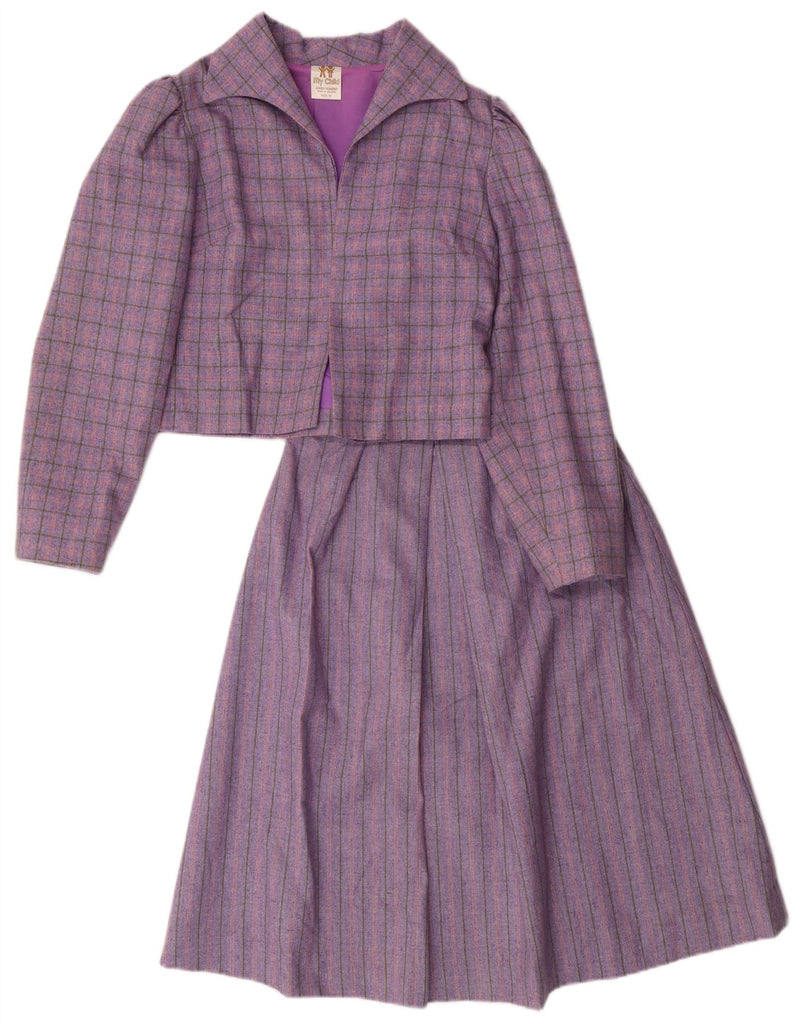 VINTAGE Girls 2 Piece Skirt Set 8-9 Years W24 Purple Check Polyester