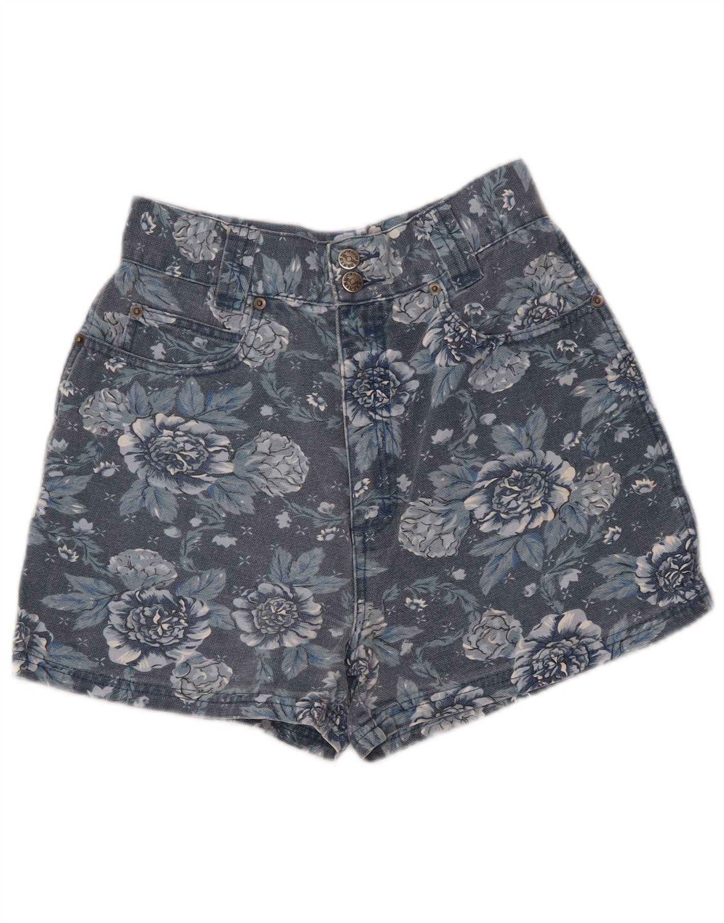 VINTAGE Girls High Waist Denim Shorts 9-10 Years W26 Navy Blue Floral