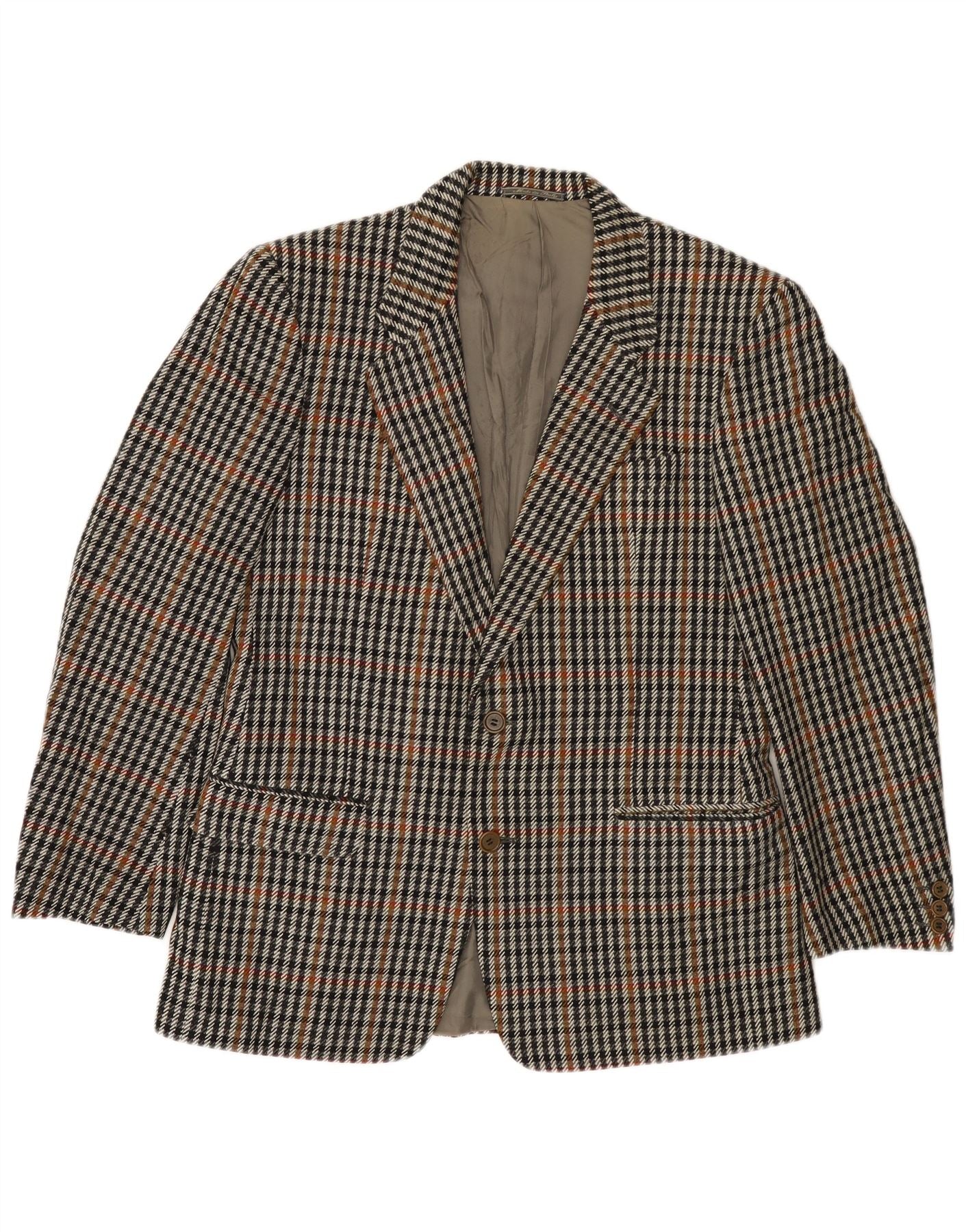 VINTAGE Mens 2 Button Blazer Jacket IT 50 Large Grey Houndstooth Wool