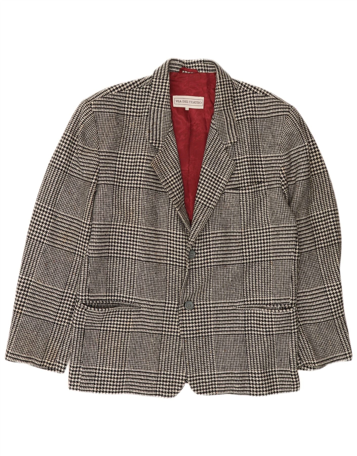 VINTAGE Mens 2 Button Blazer Jacket IT 52 XL Black Houndstooth Wool