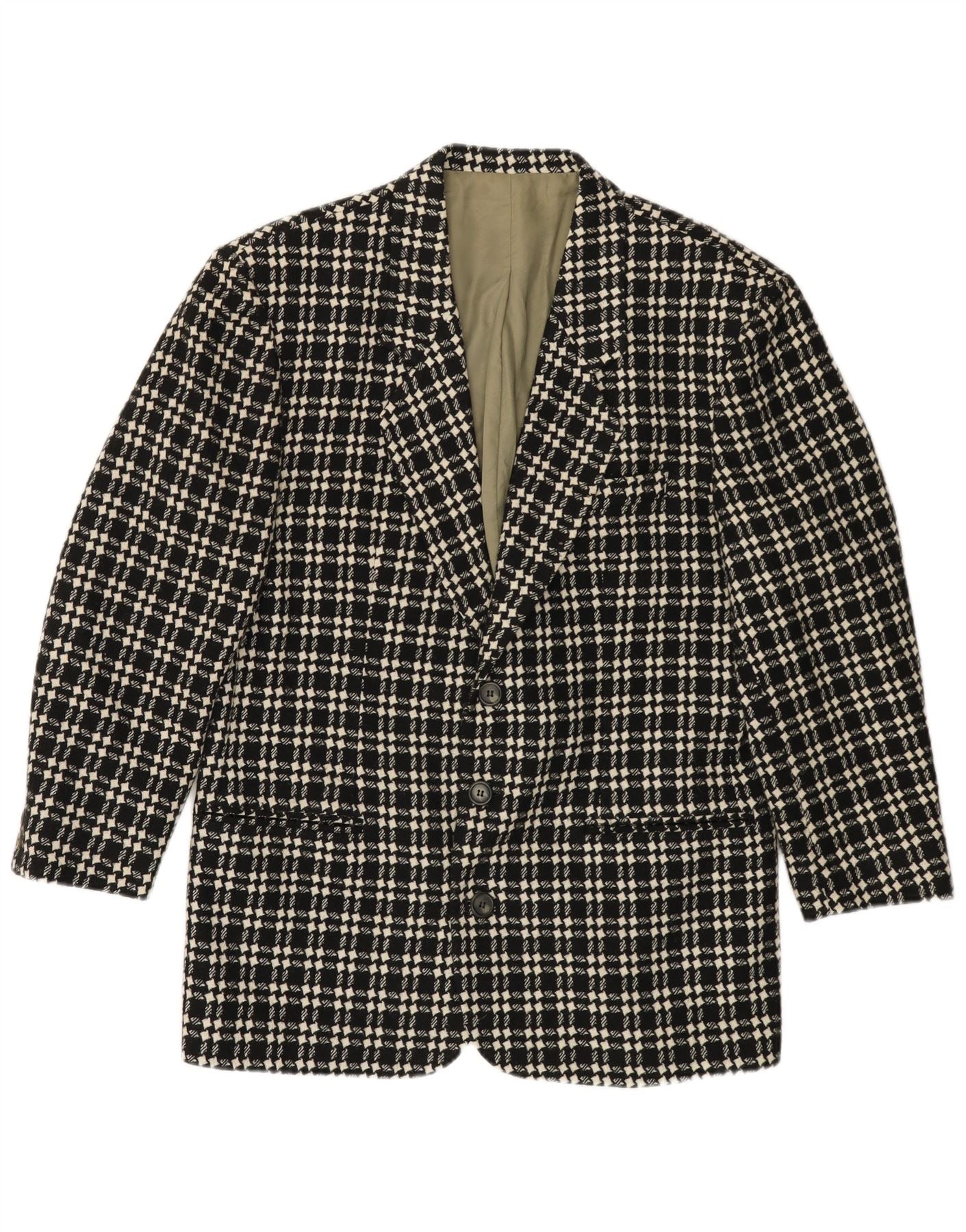 VINTAGE Mens 3 Button Blazer Jacket IT 48 Medium Black Houndstooth Wool