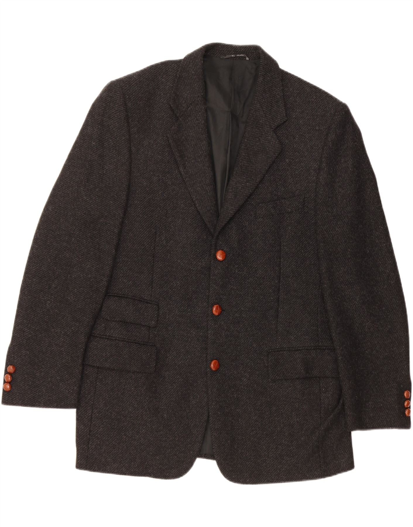 VINTAGE Mens 3 Button Blazer Jacket IT 50 Large Grey Herringbone Wool