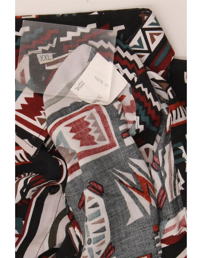 VINTAGE Mens Abstract Pattern Short Sleeve Shirt 2XL Black Viscose