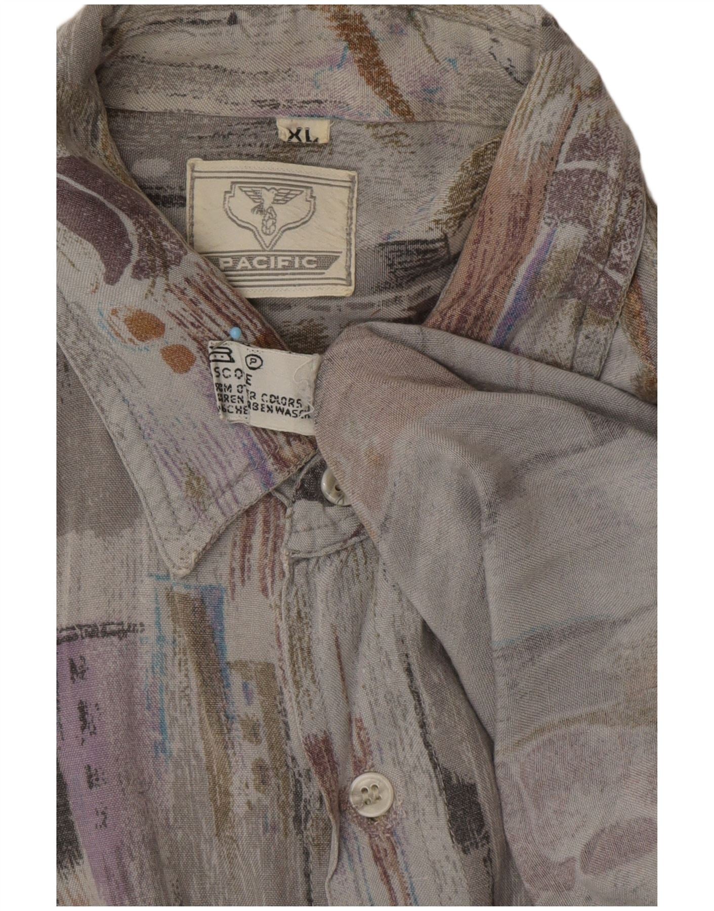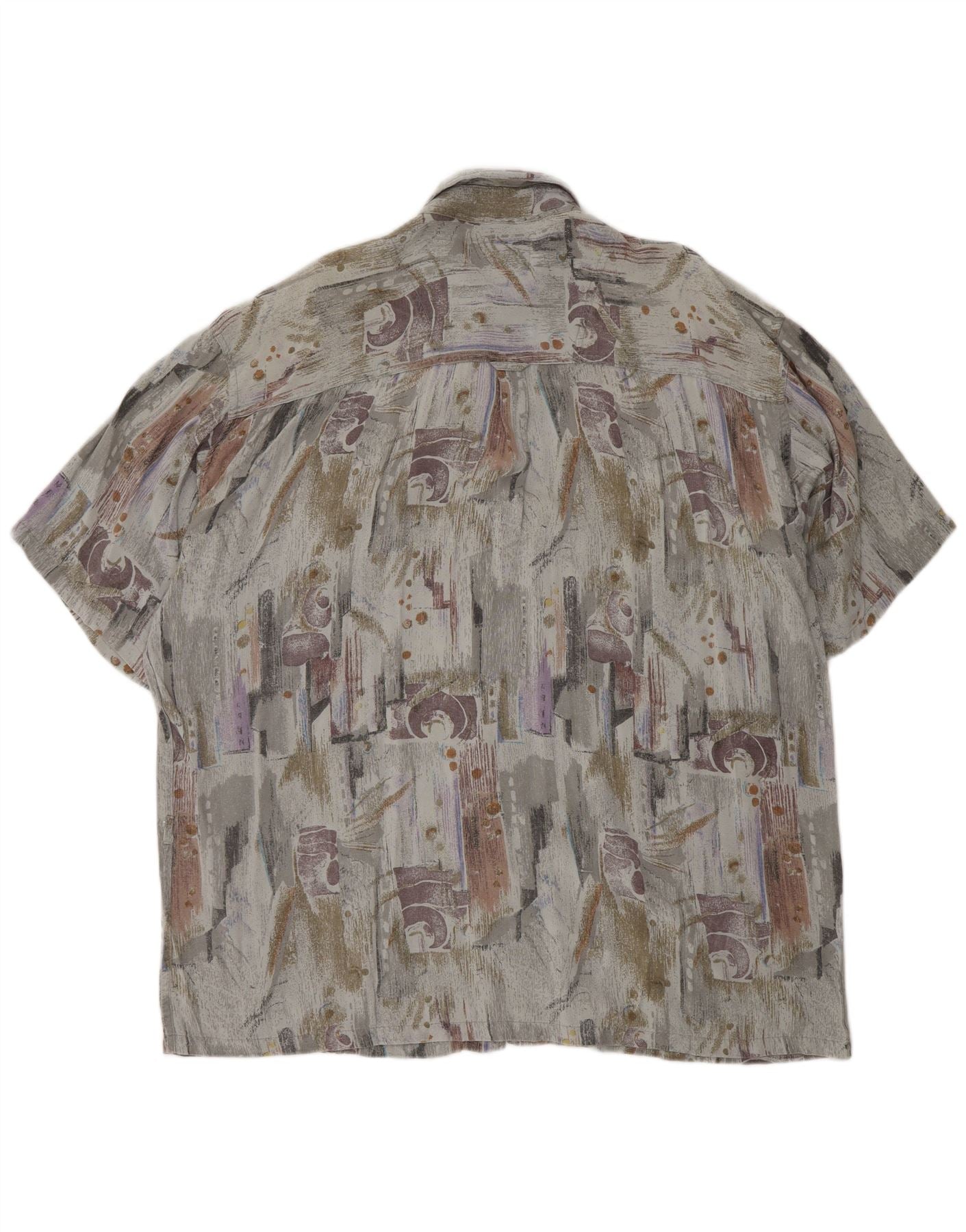 VINTAGE Mens Abstract Pattern Short Sleeve Shirt XL Grey Viscose Retro