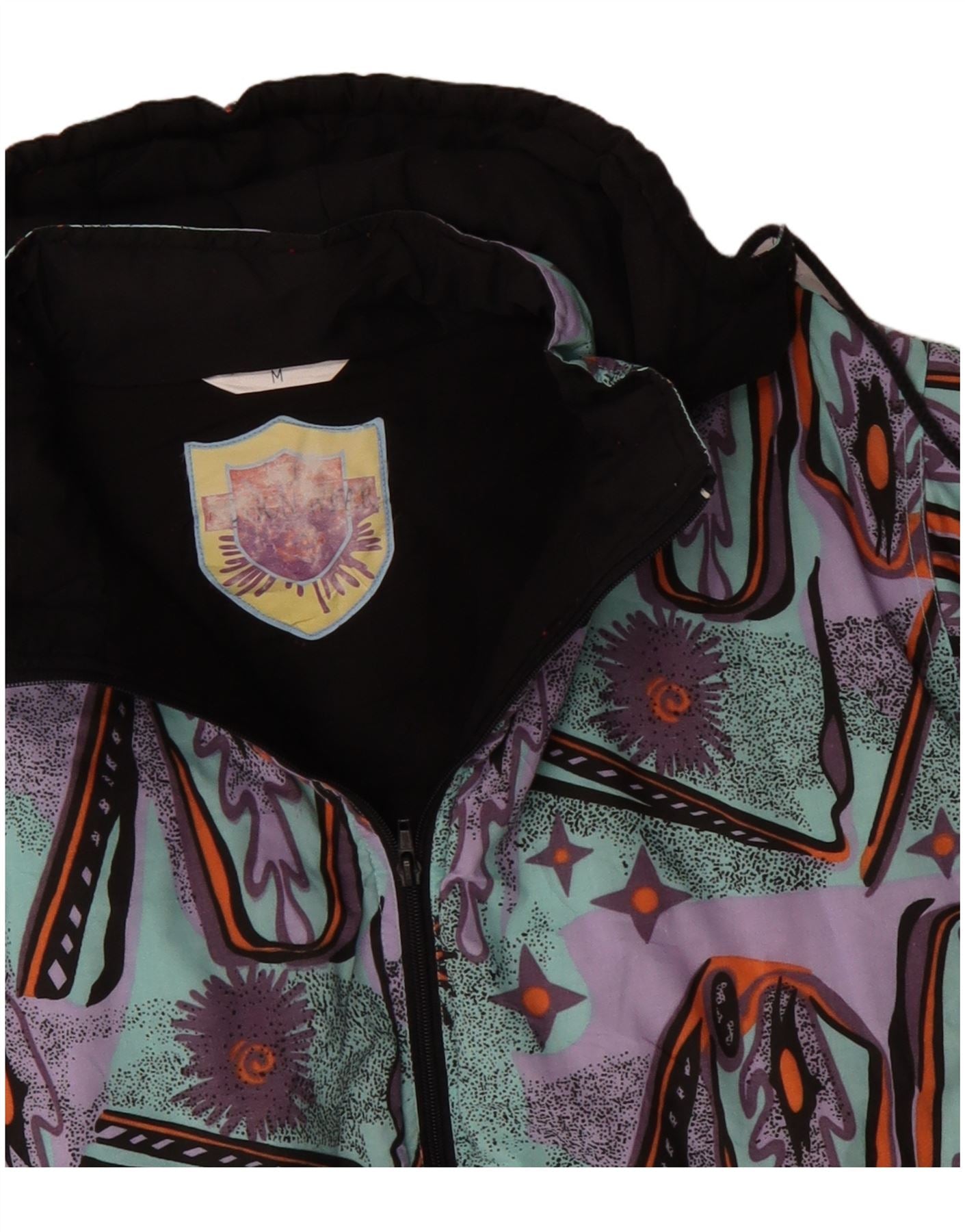 VINTAGE Mens Abstract Pattern Windbreaker Jacket UK 38 Medium Turquoise