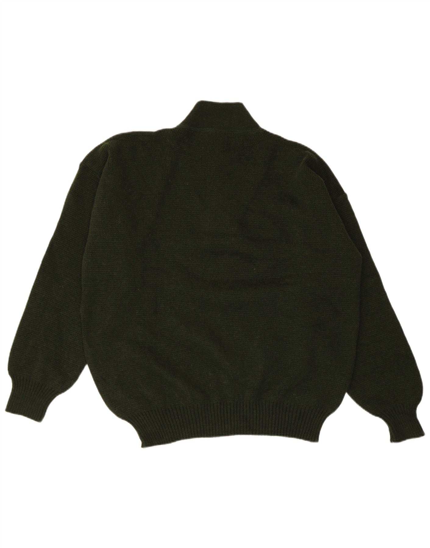VINTAGE Mens Button Neck Jumper Sweater Large Green