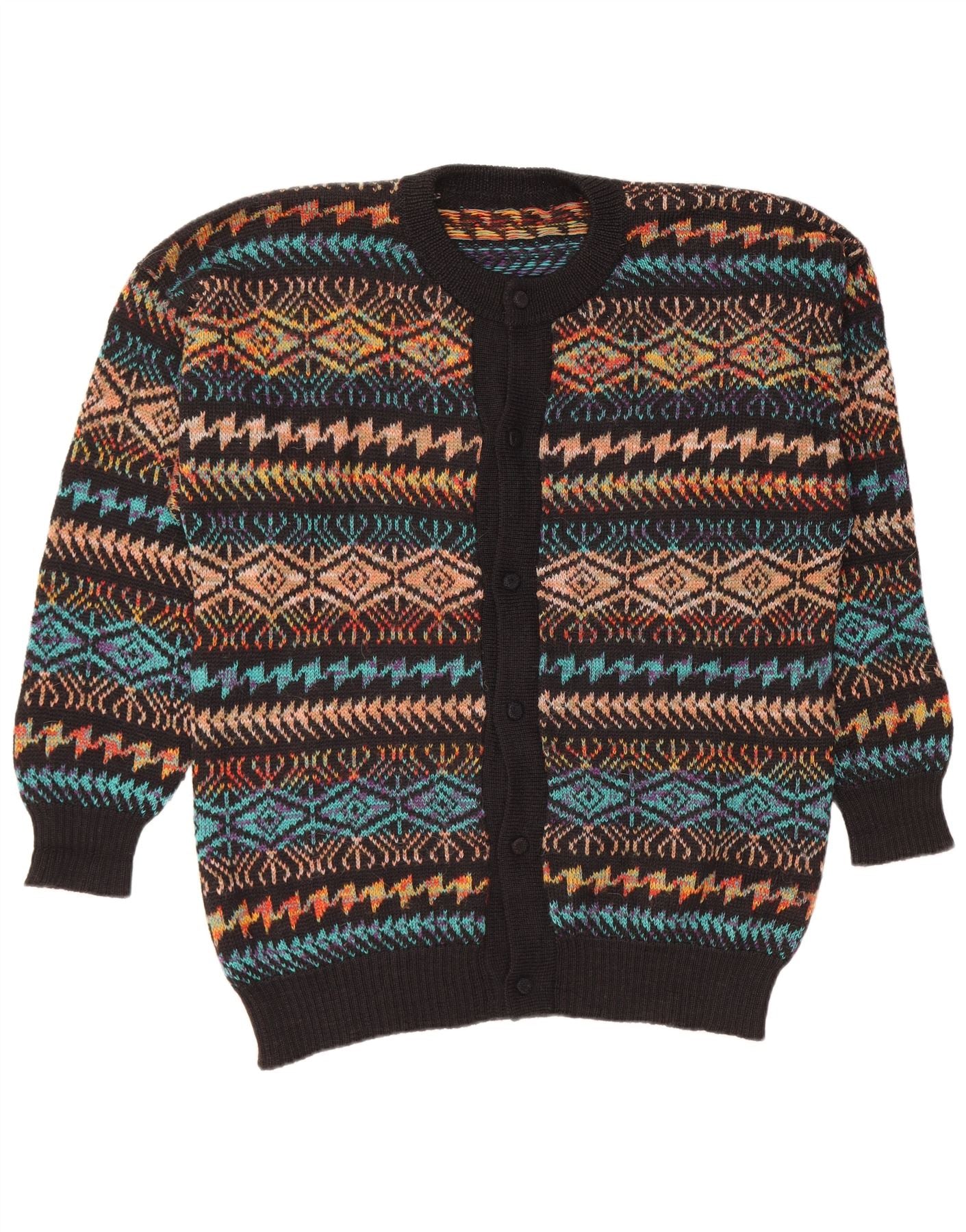 VINTAGE Mens Cardigan Sweater Large Black Geometric