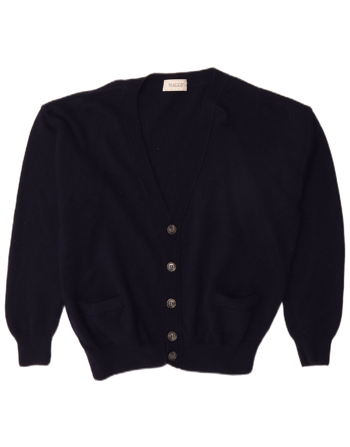 VINTAGE Mens Cardigan Sweater Medium Navy Blue New Wool
