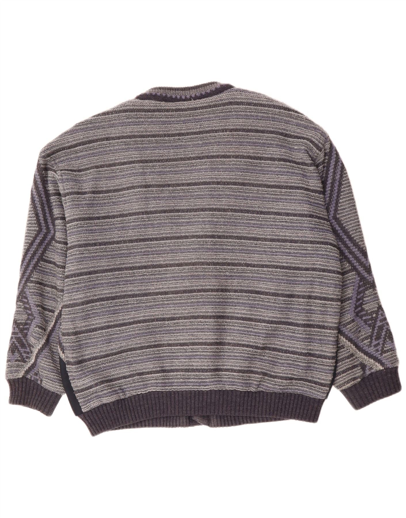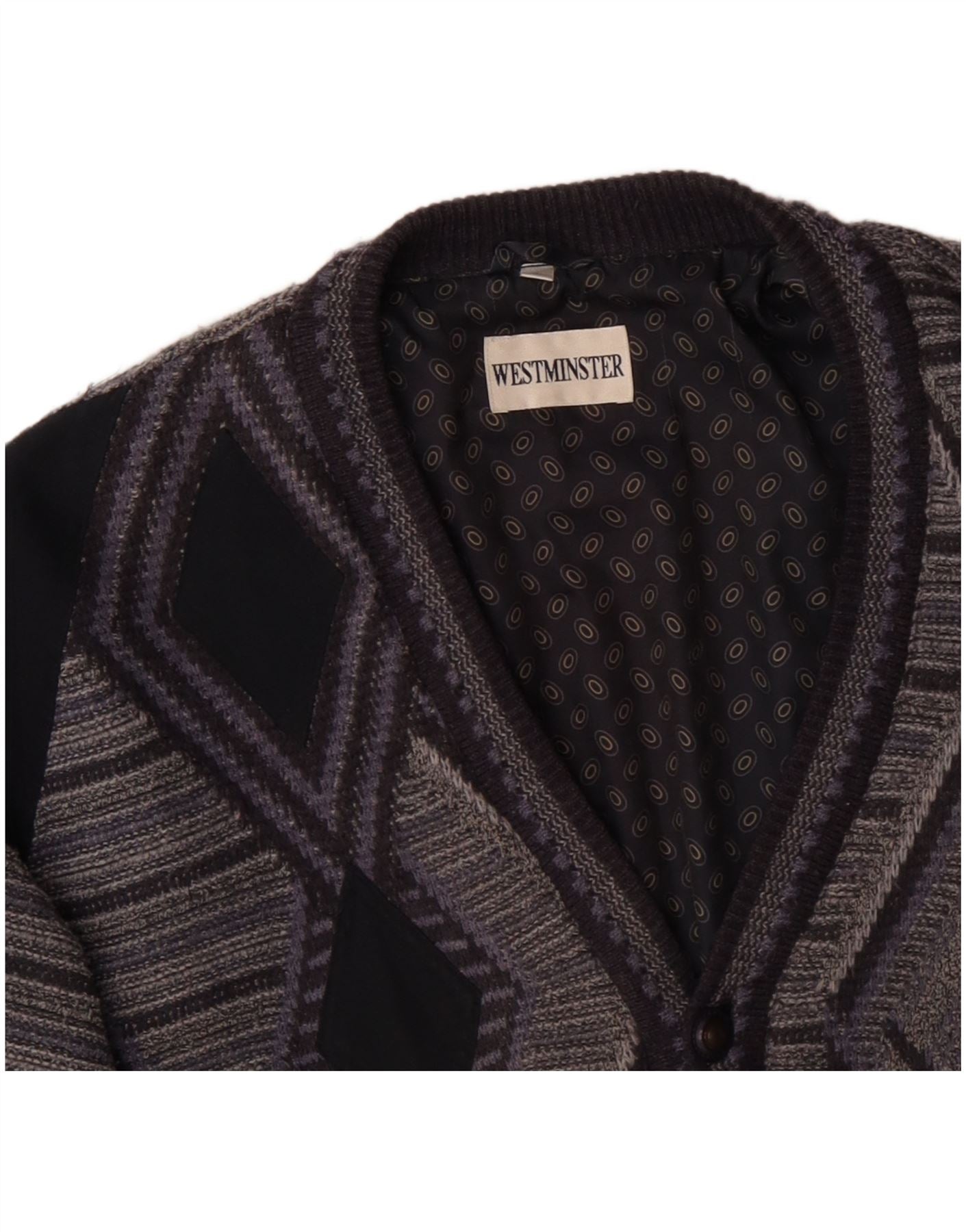 VINTAGE Mens Cardigan Sweater XL Grey Geometric Acrylic