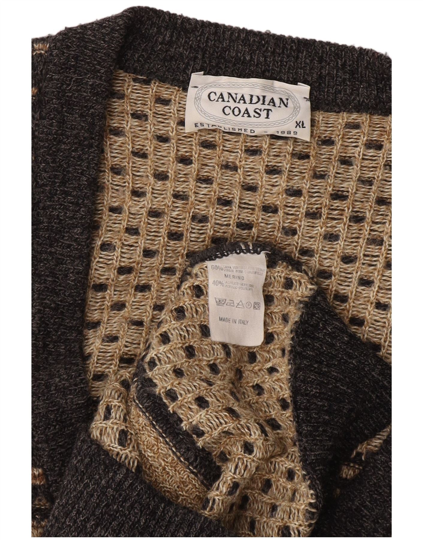 VINTAGE Mens Cardigan Sweater XL Grey Striped Wool