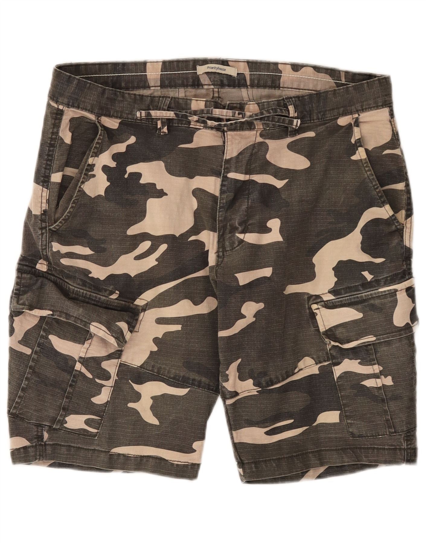 VINTAGE Mens Cargo Shorts W34 Large Khaki Camouflage Cotton