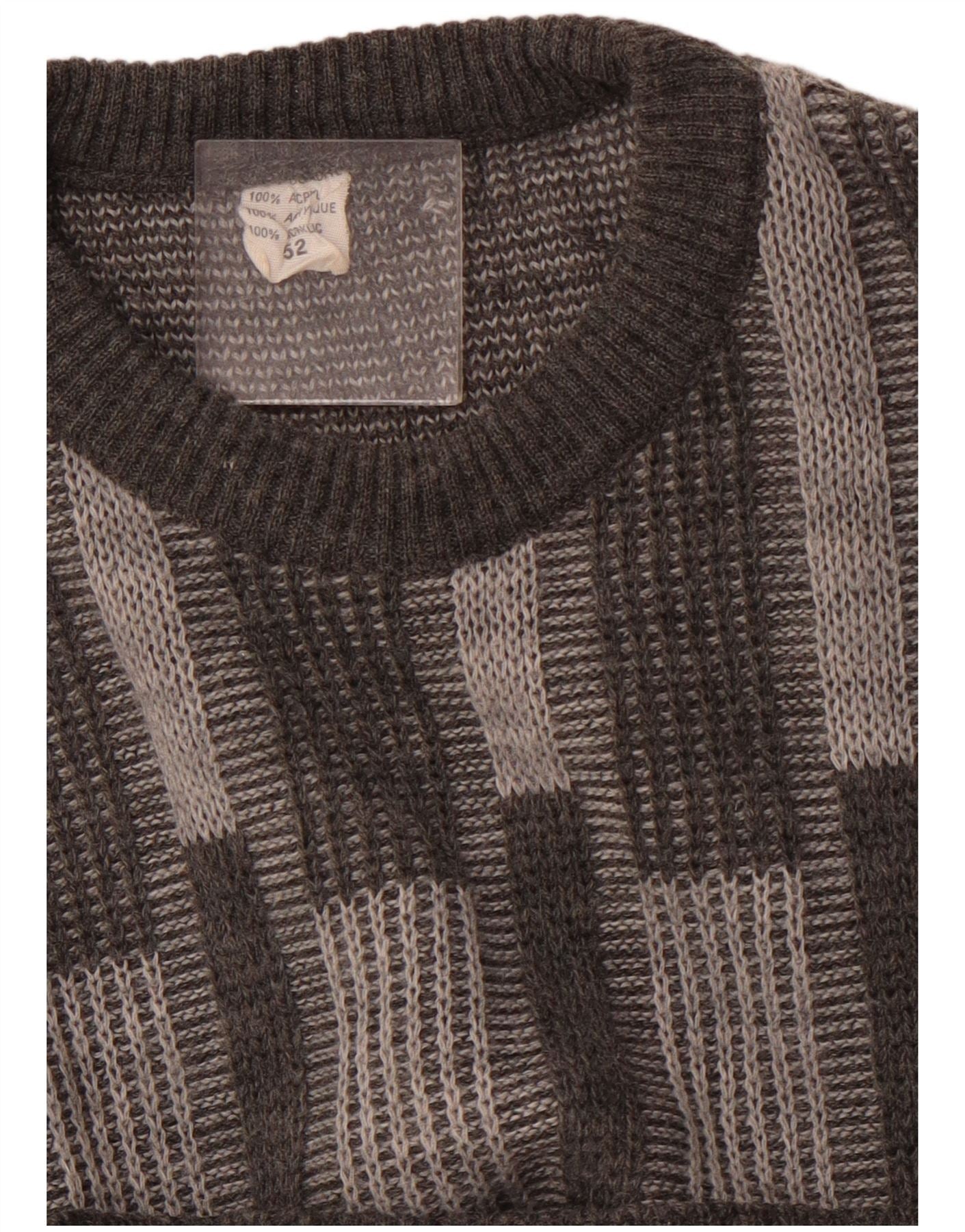 VINTAGE Mens Crew Neck Jumper Sweater IT 52 Large Grey Geometric Acrylic