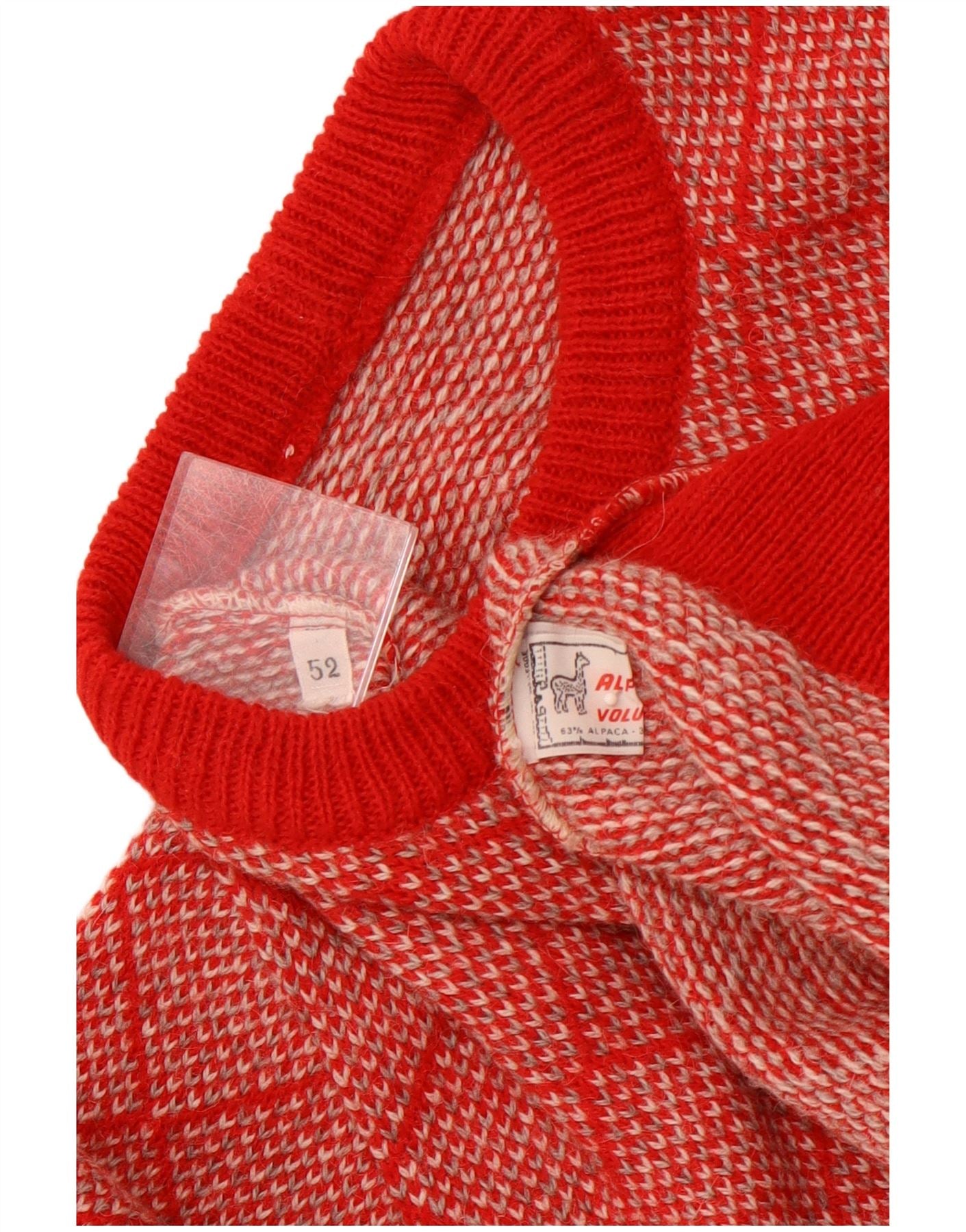 VINTAGE Mens Crew Neck Jumper Sweater IT 52 Large Red Geometric