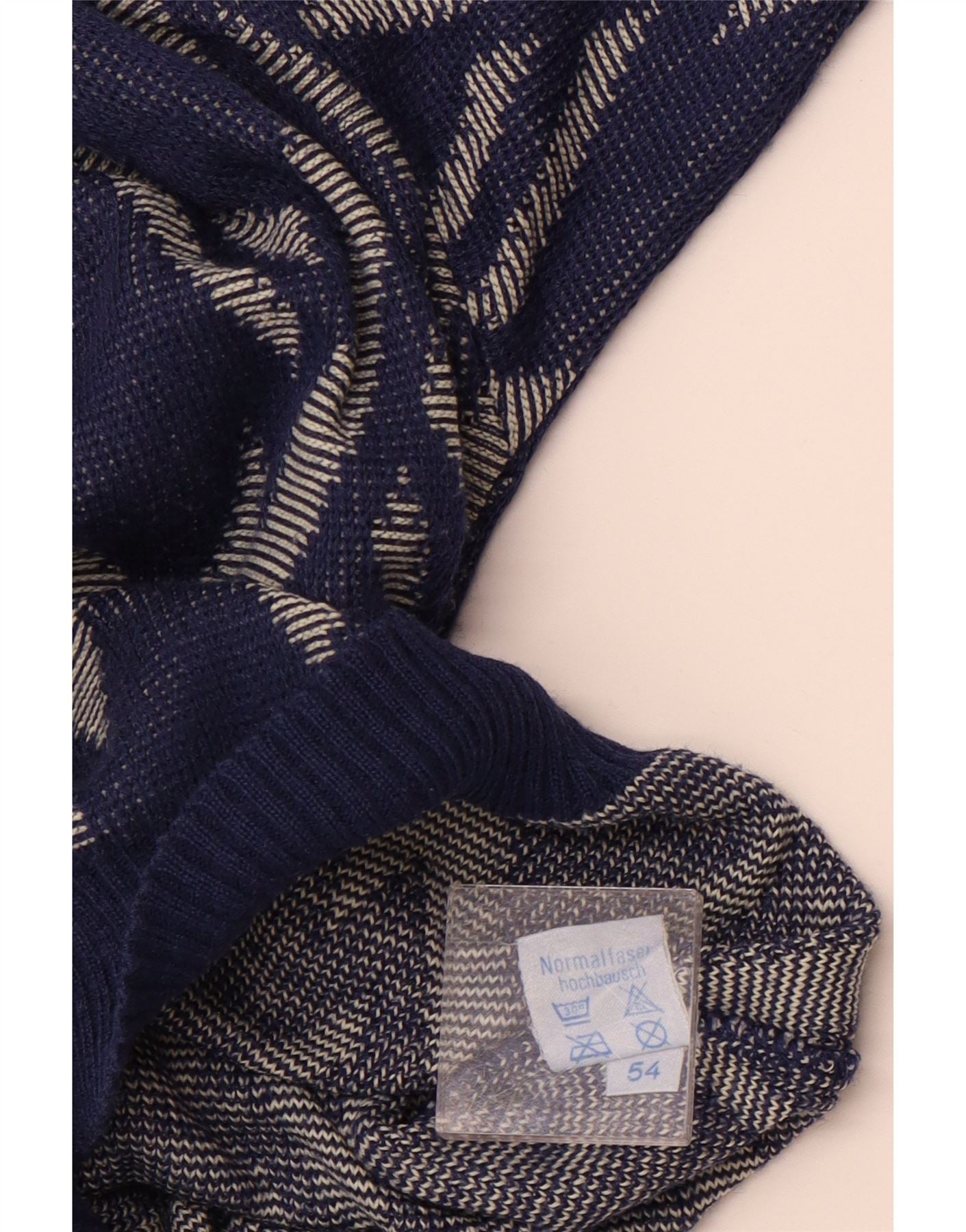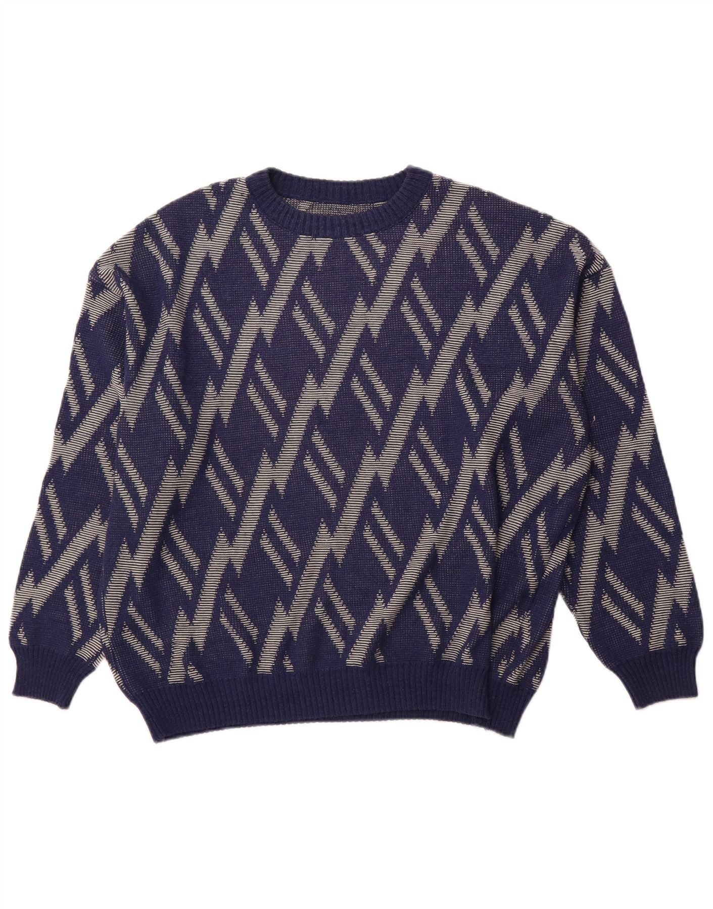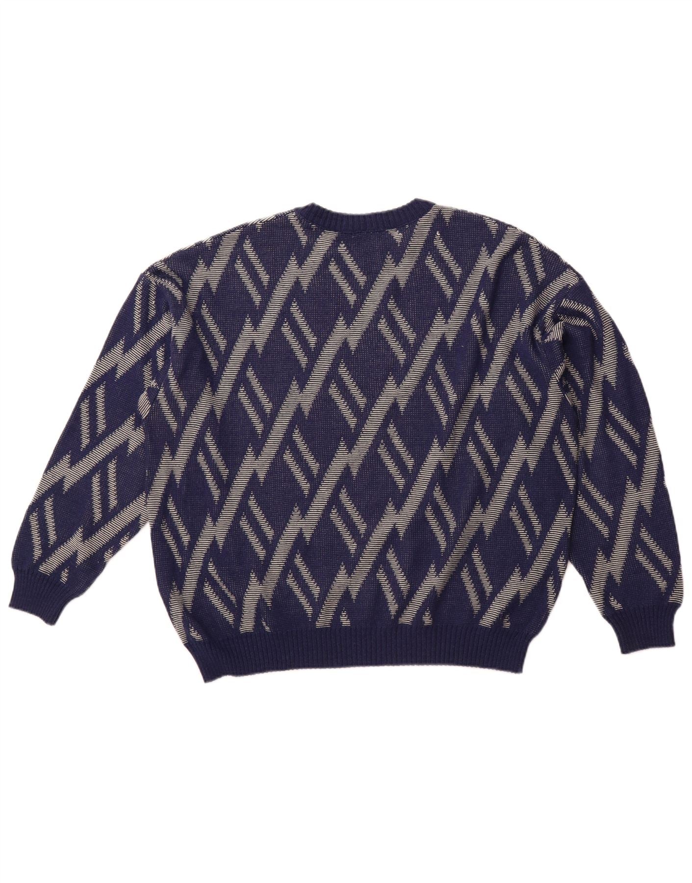 VINTAGE Mens Crew Neck Jumper Sweater IT 54 XL Blue Geometric