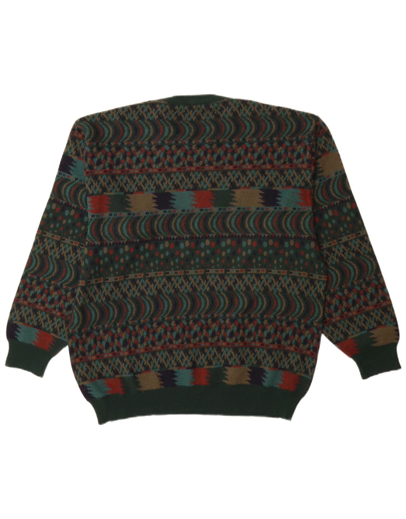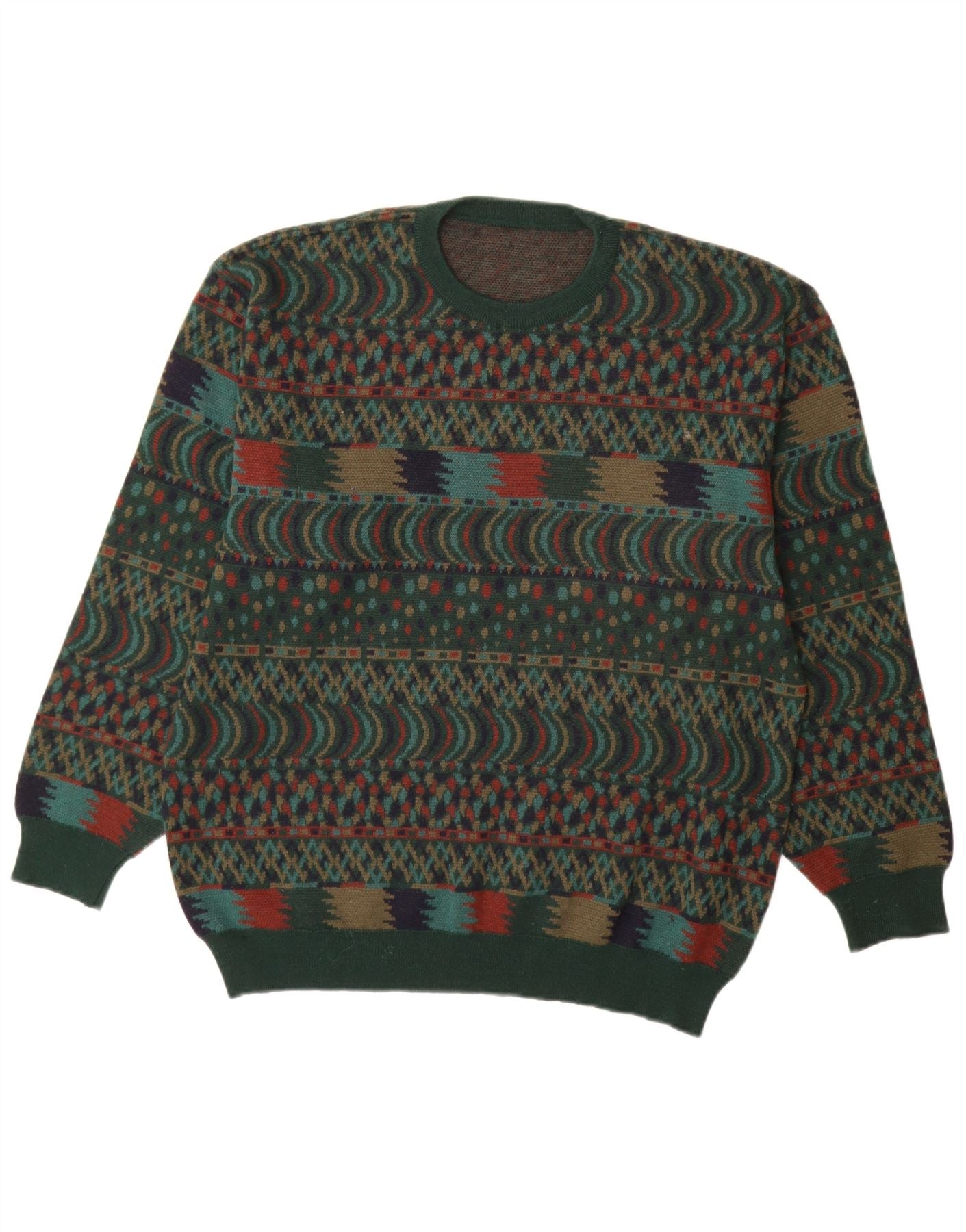 VINTAGE Mens Crew Neck Jumper Sweater IT 54 XL Green Fair Isle Wool