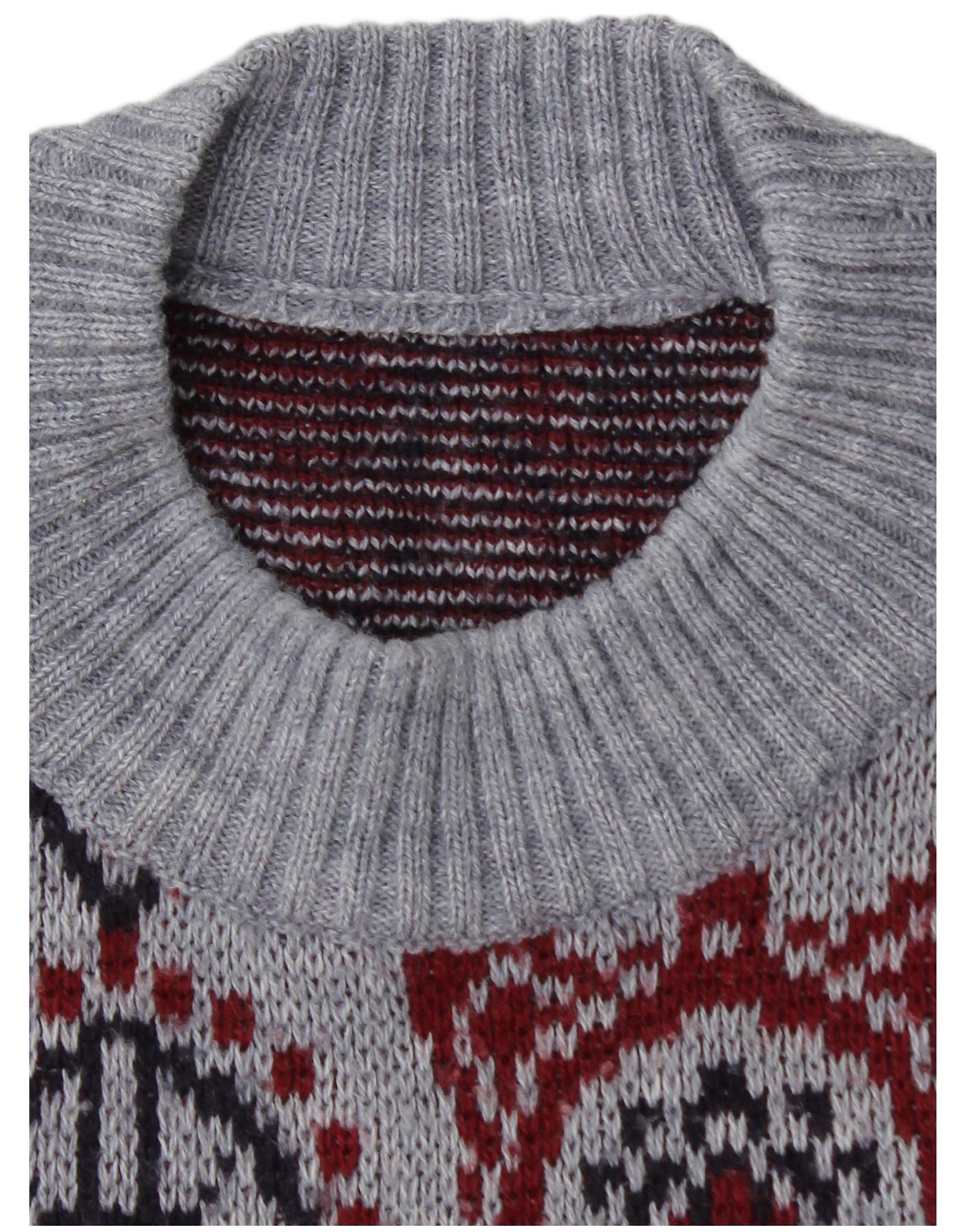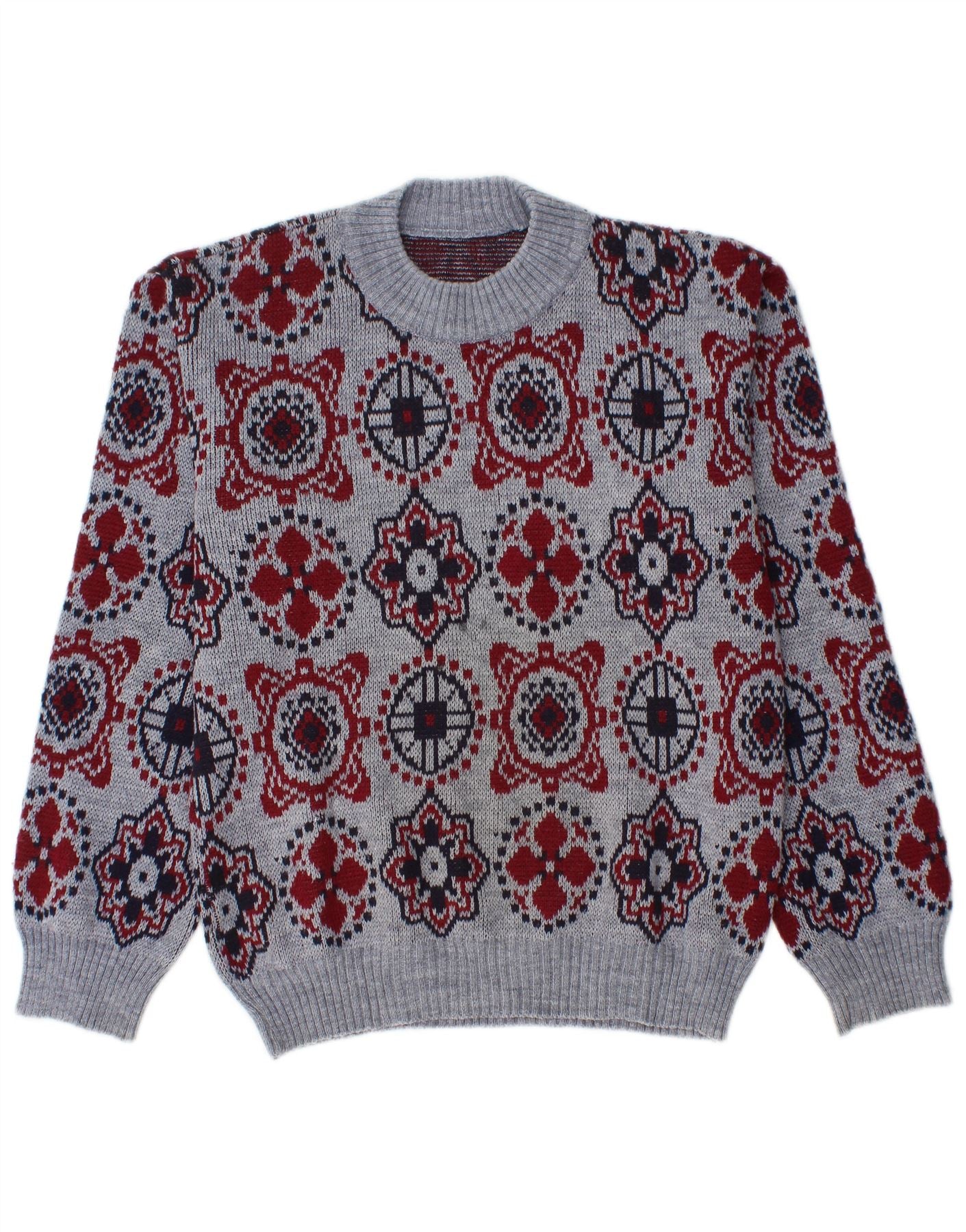 VINTAGE Mens Crew Neck Jumper Sweater Medium Blue Fair Isle