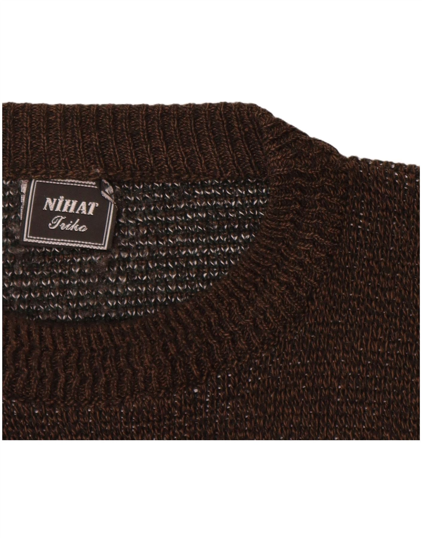 VINTAGE Mens Crew Neck Jumper Sweater XL Brown Colourblock Acrylic