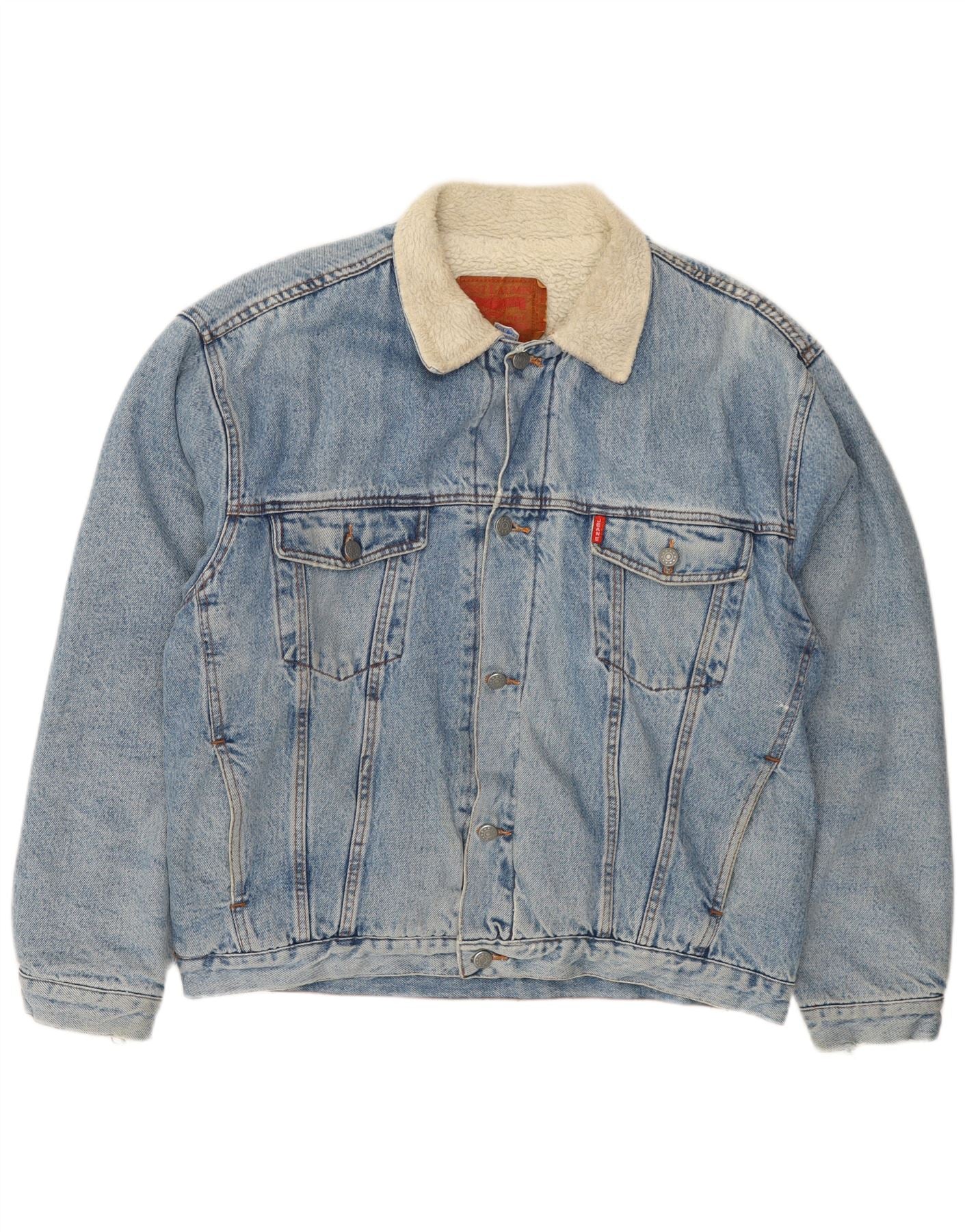 VINTAGE Mens Denim Sherpa Jacket UK 41 XL Blue Cotton