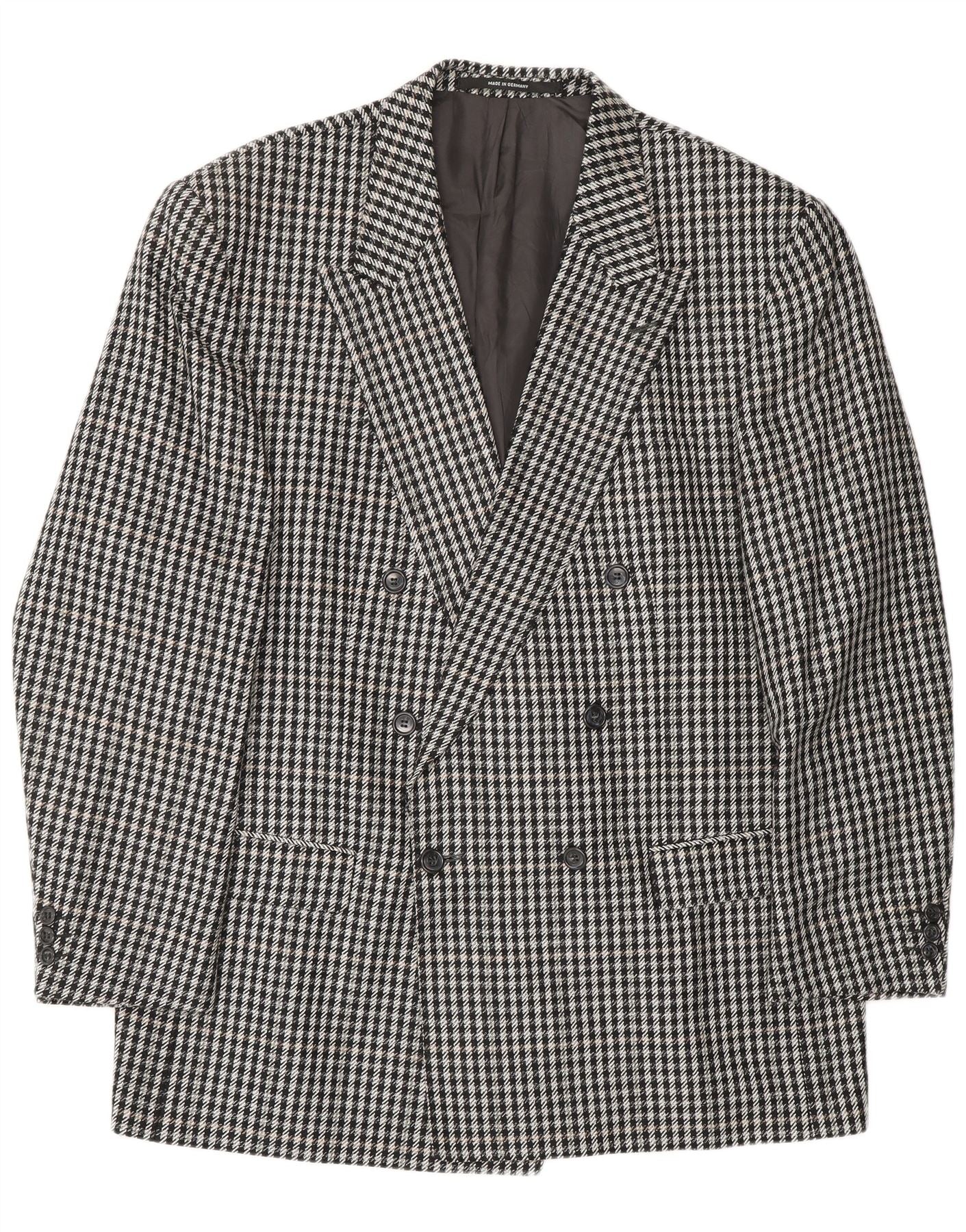 VINTAGE Mens Double Breasted Blazer Jacket EU 56 3XL Black Herringbone