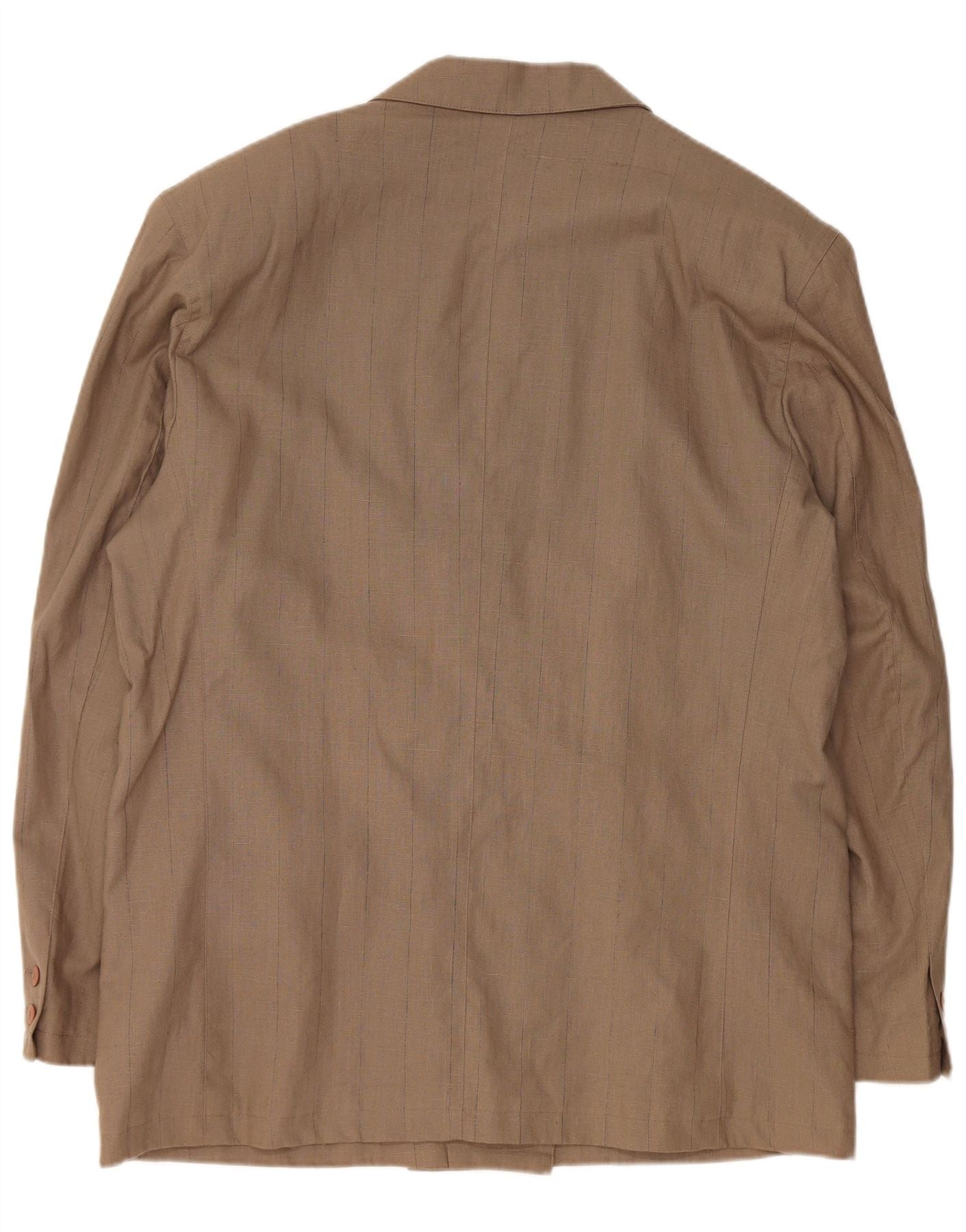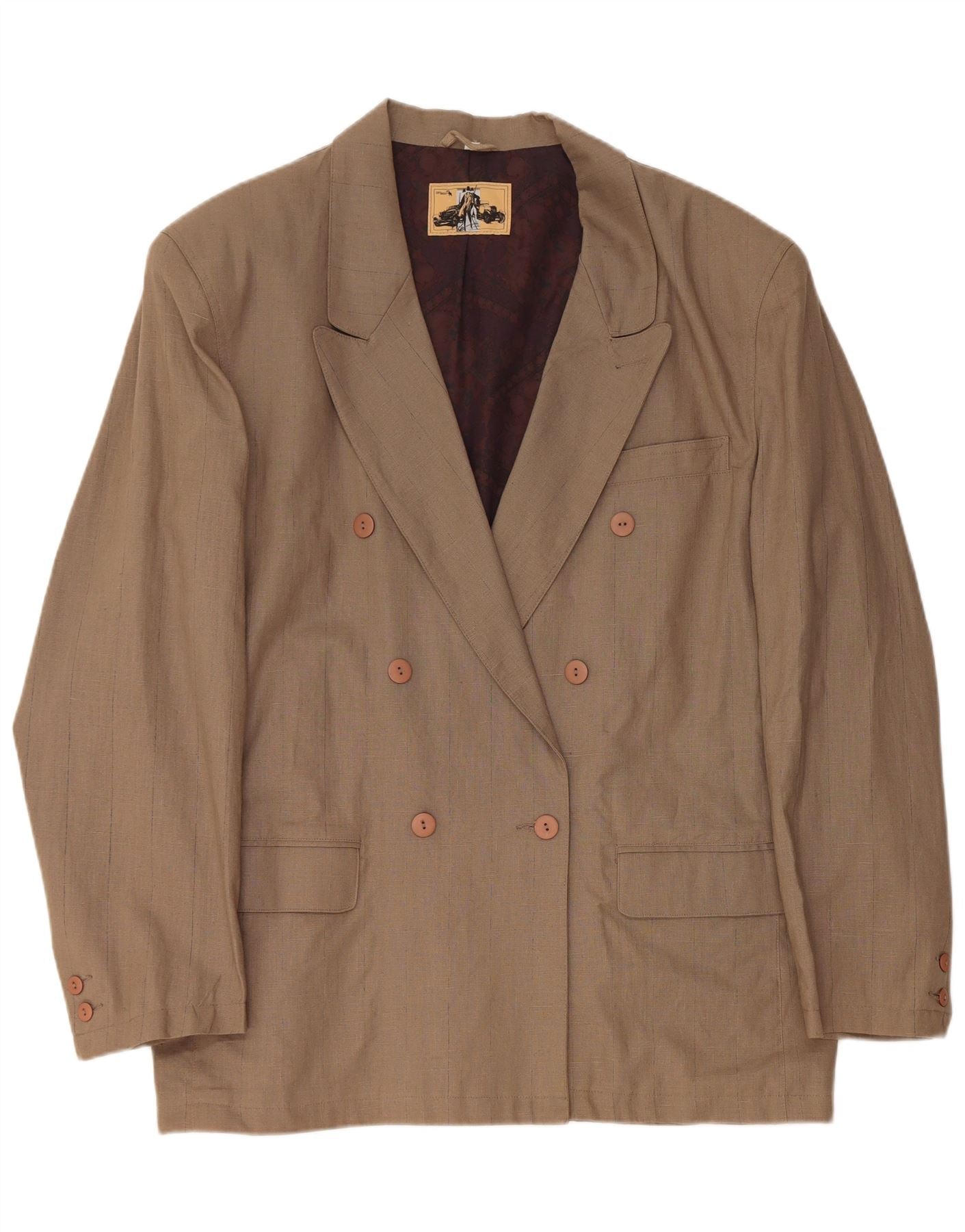 VINTAGE Mens Double Breasted Blazer Jacket EU 56 3XL Brown Linen