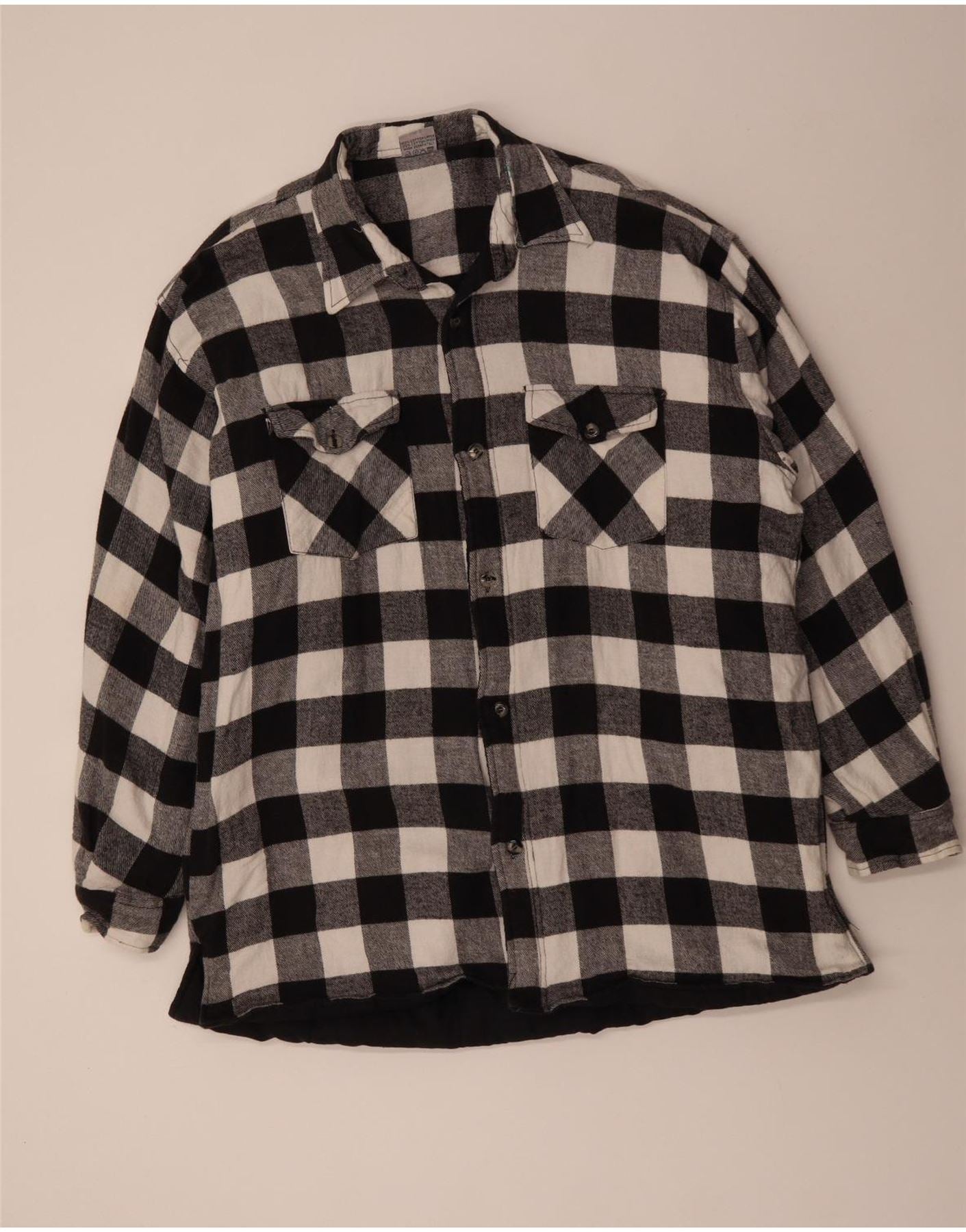 VINTAGE Mens Flannel Shirt 3XL Black Gingham Cotton
