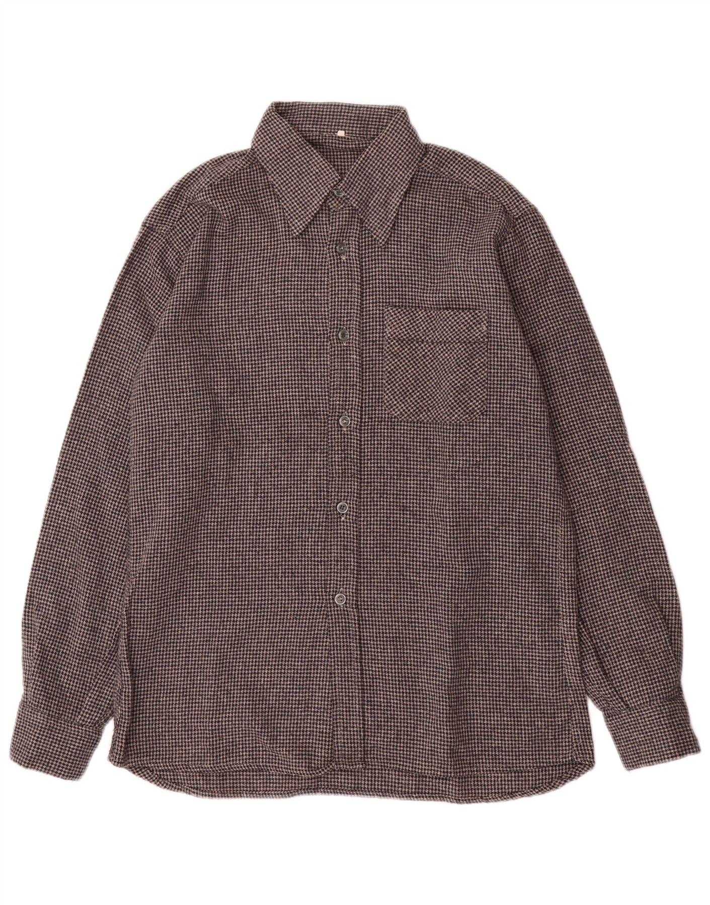 VINTAGE Mens Flannel Shirt Size 40 Medium Grey Houndstooth