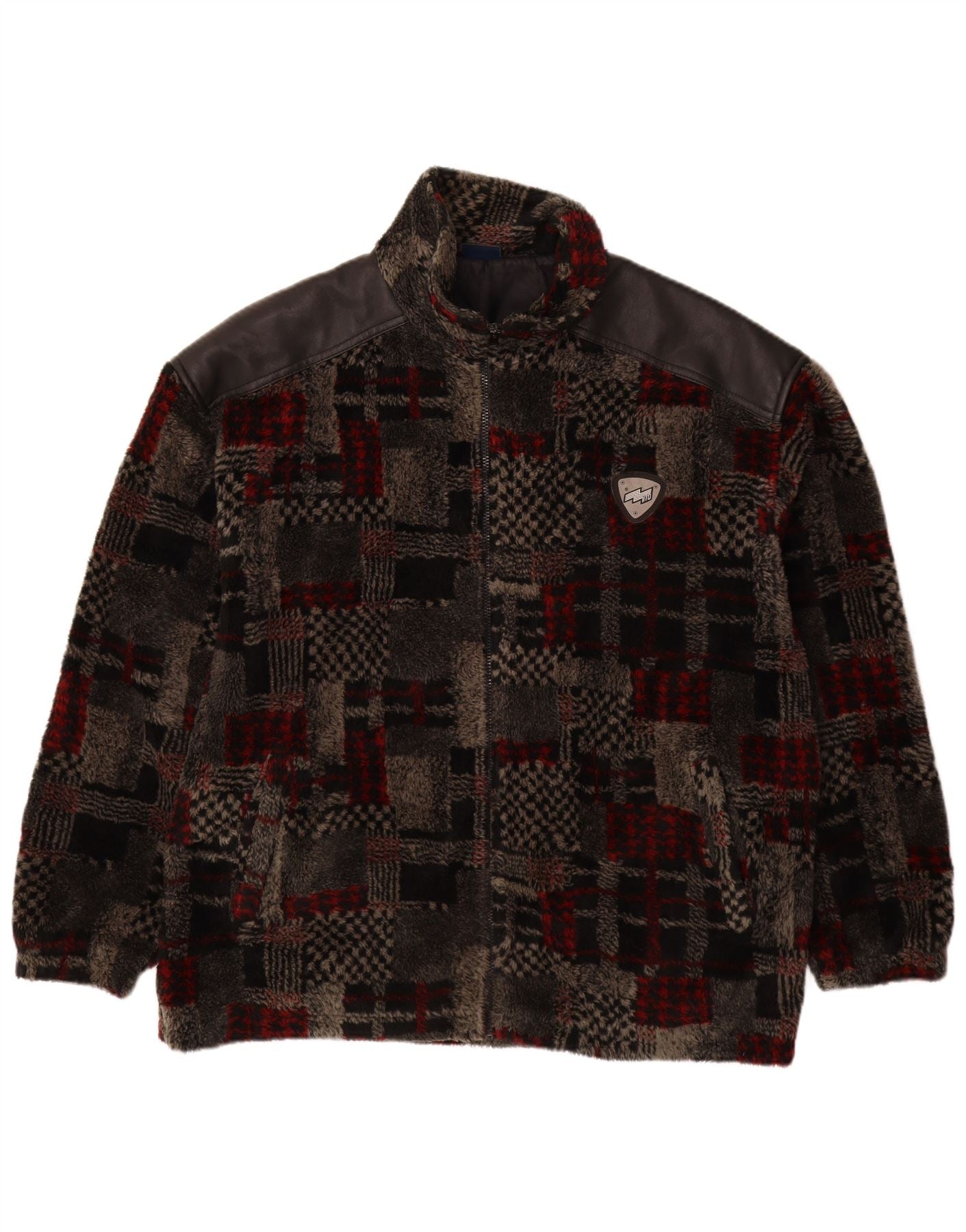 VINTAGE Mens Fleece Jacket UK 44 2XL Grey Patchwork