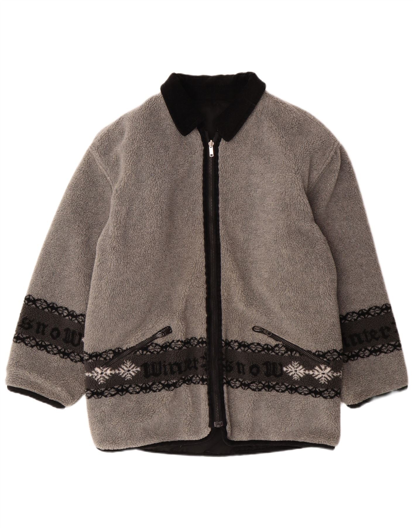 VINTAGE Mens Graphic Reversible Fleece Jacket UK 38 Medium Grey Fair Isle