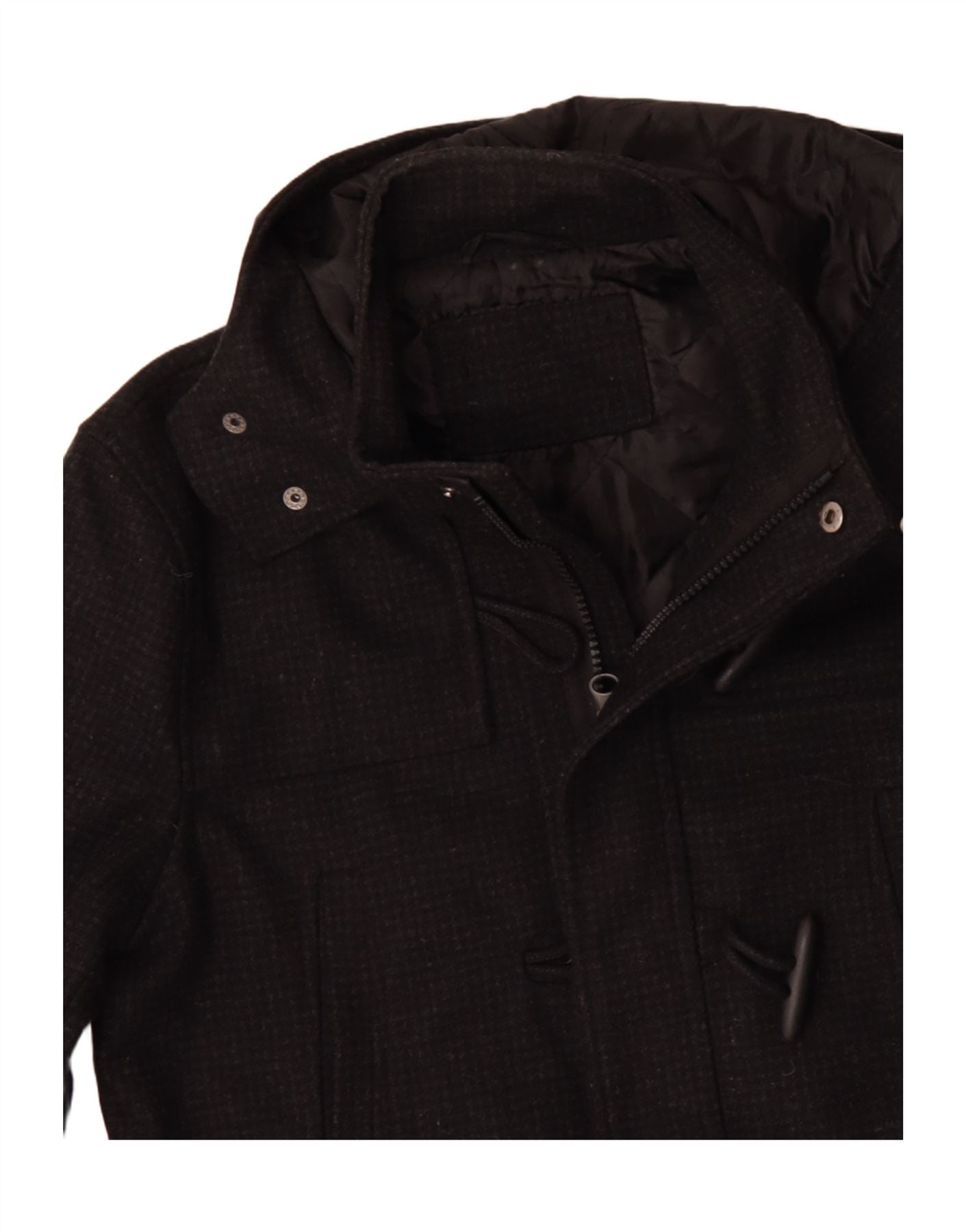 VINTAGE Mens Hooded Duffle Coat UK 38 Medium Black Houndstooth