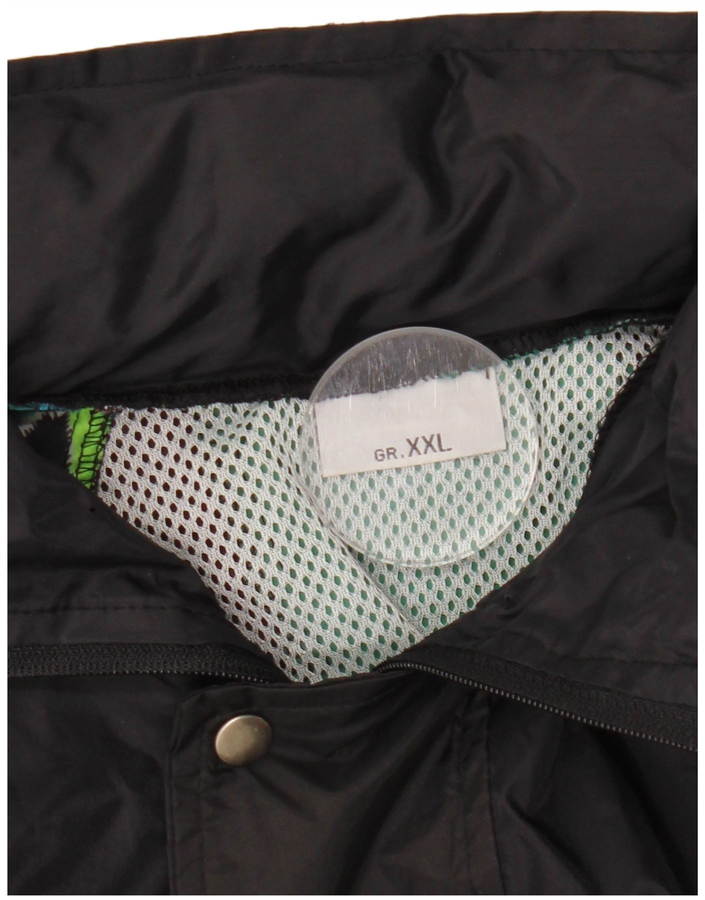 VINTAGE Mens Hooded Rain Jacket UK 44 2XL Black Geometric
