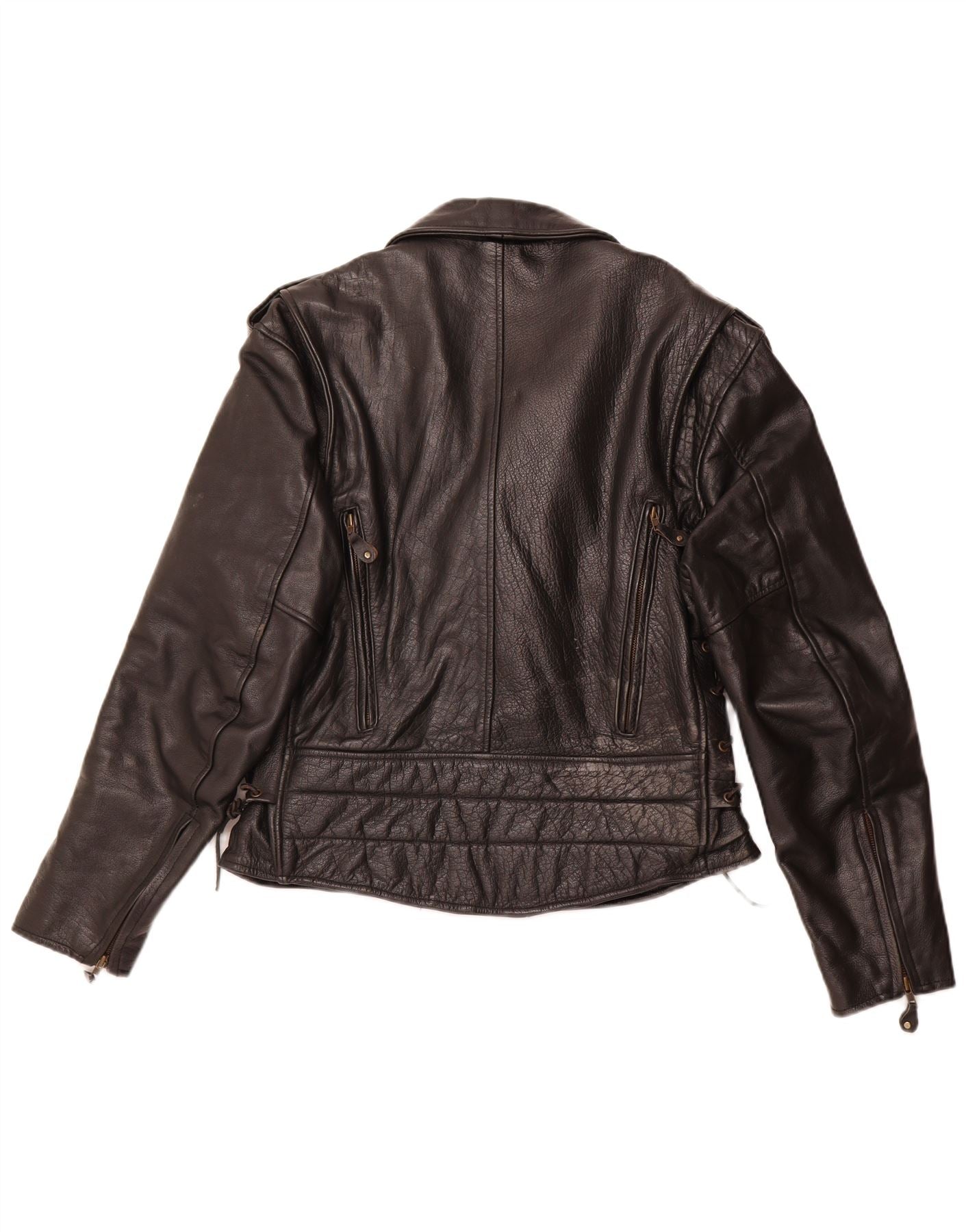 VINTAGE Mens Leather Biker Jacket UK 36 Small Black