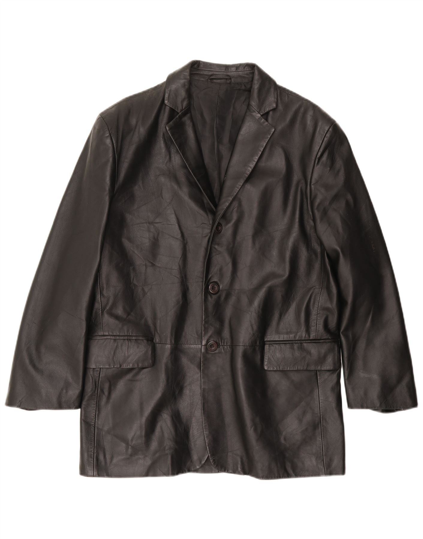 VINTAGE Mens Leather Jacket IT 50 Large Black Leather